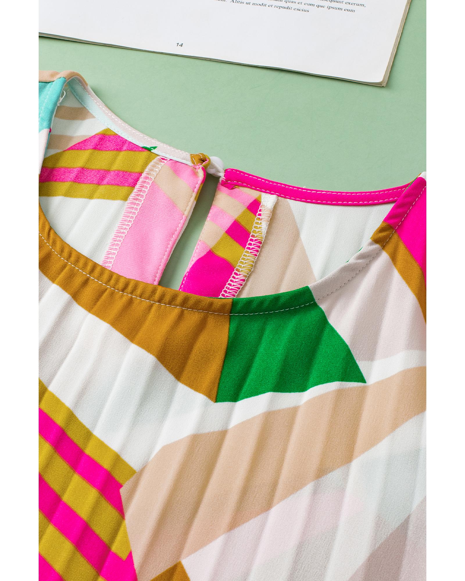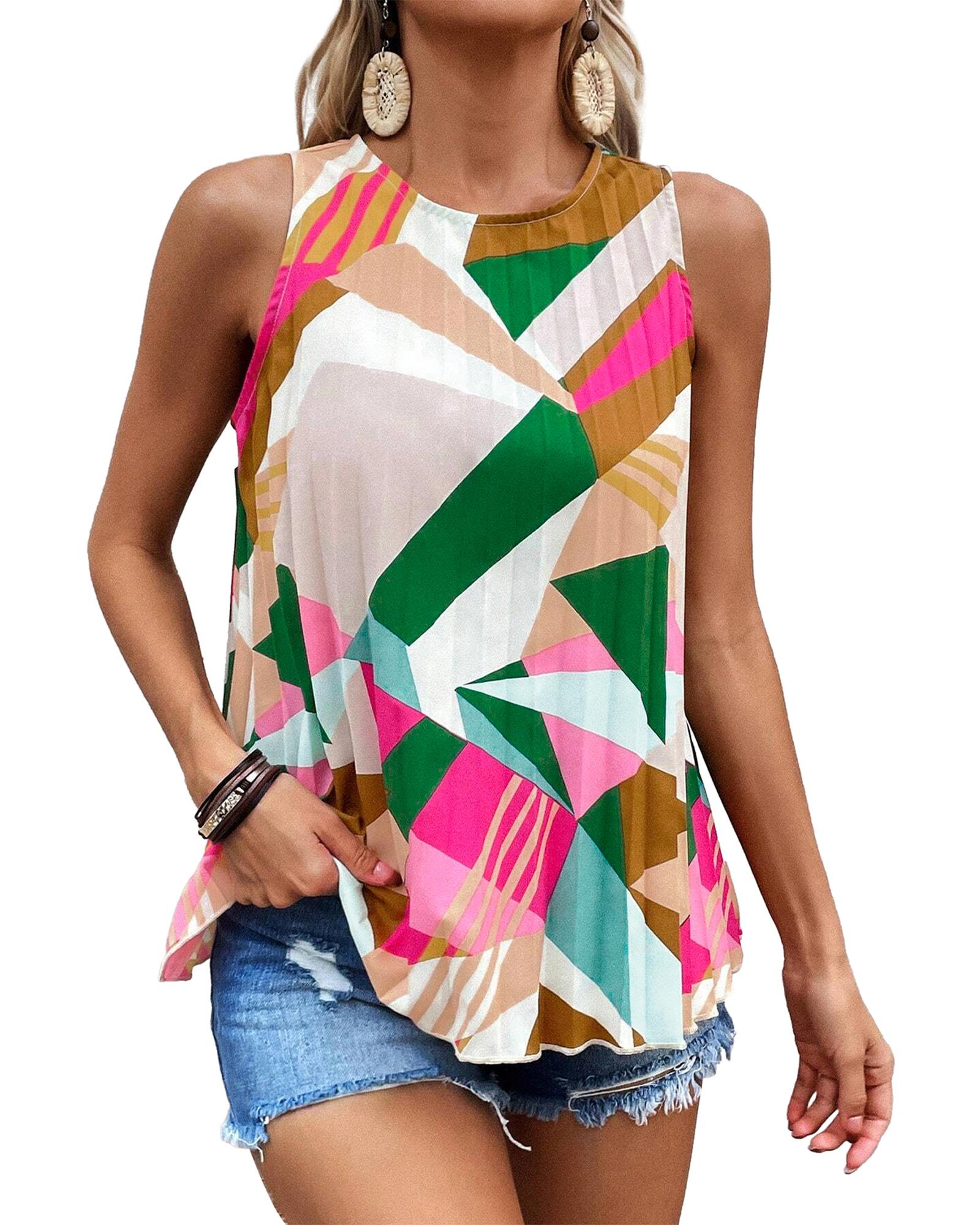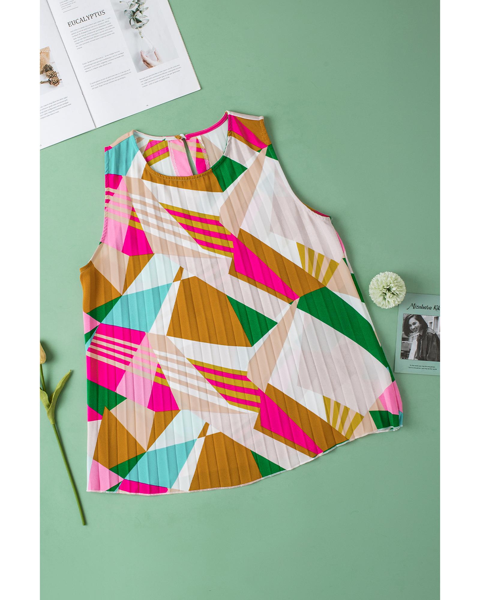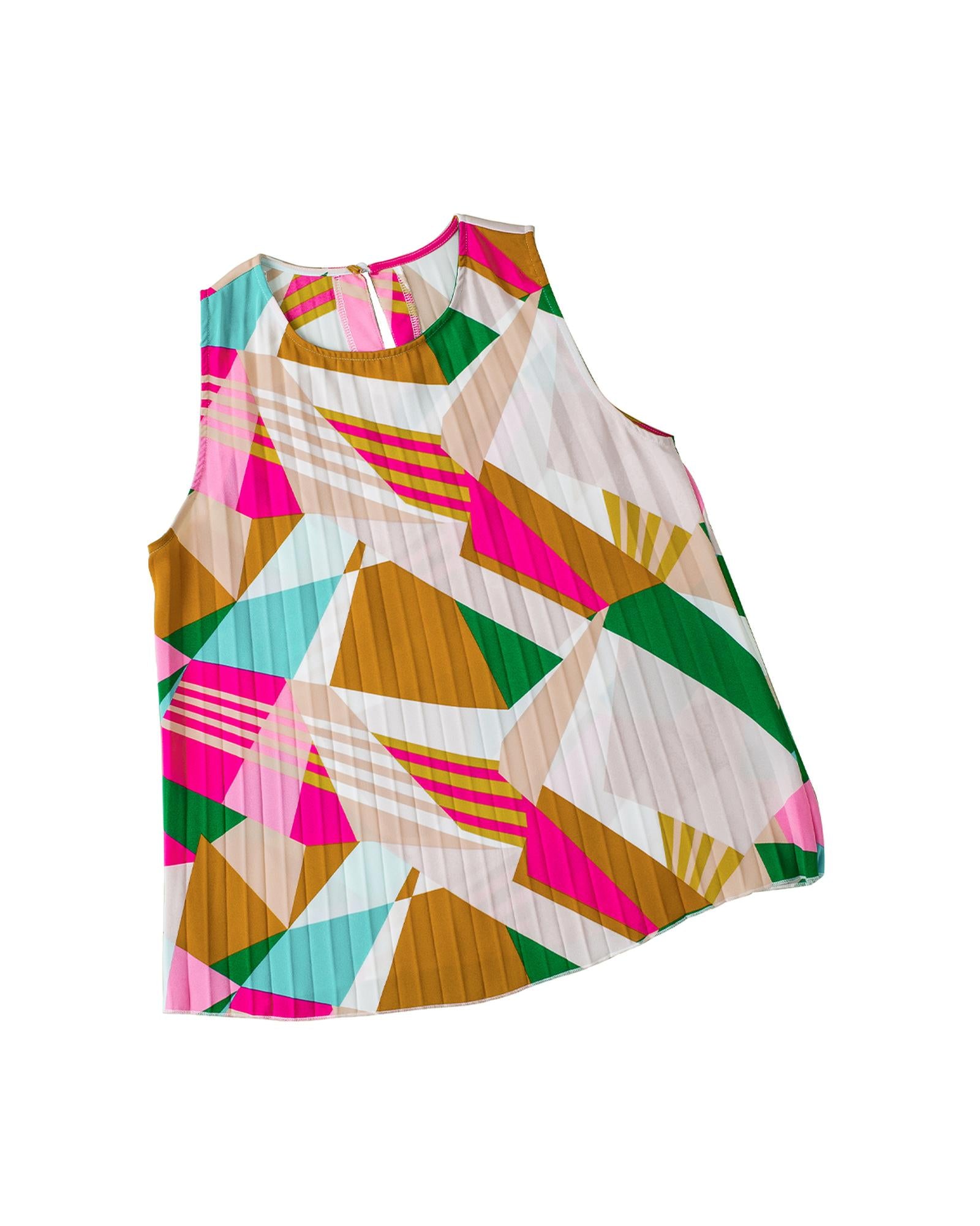 Multicolour Geometric Printed Pleated Shift Tank Top - S