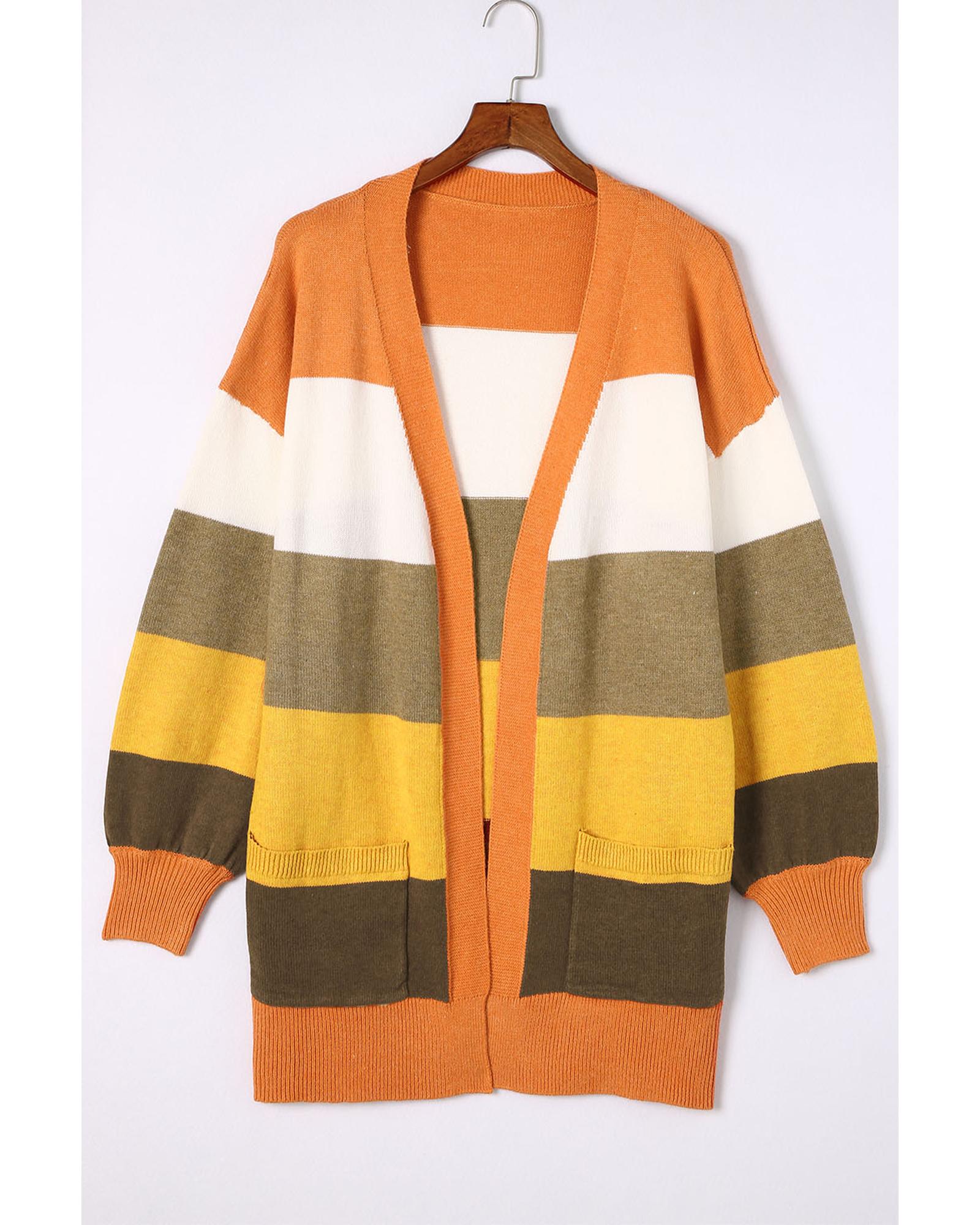 Open Front Pocketed Colorblock Cardigan - XL