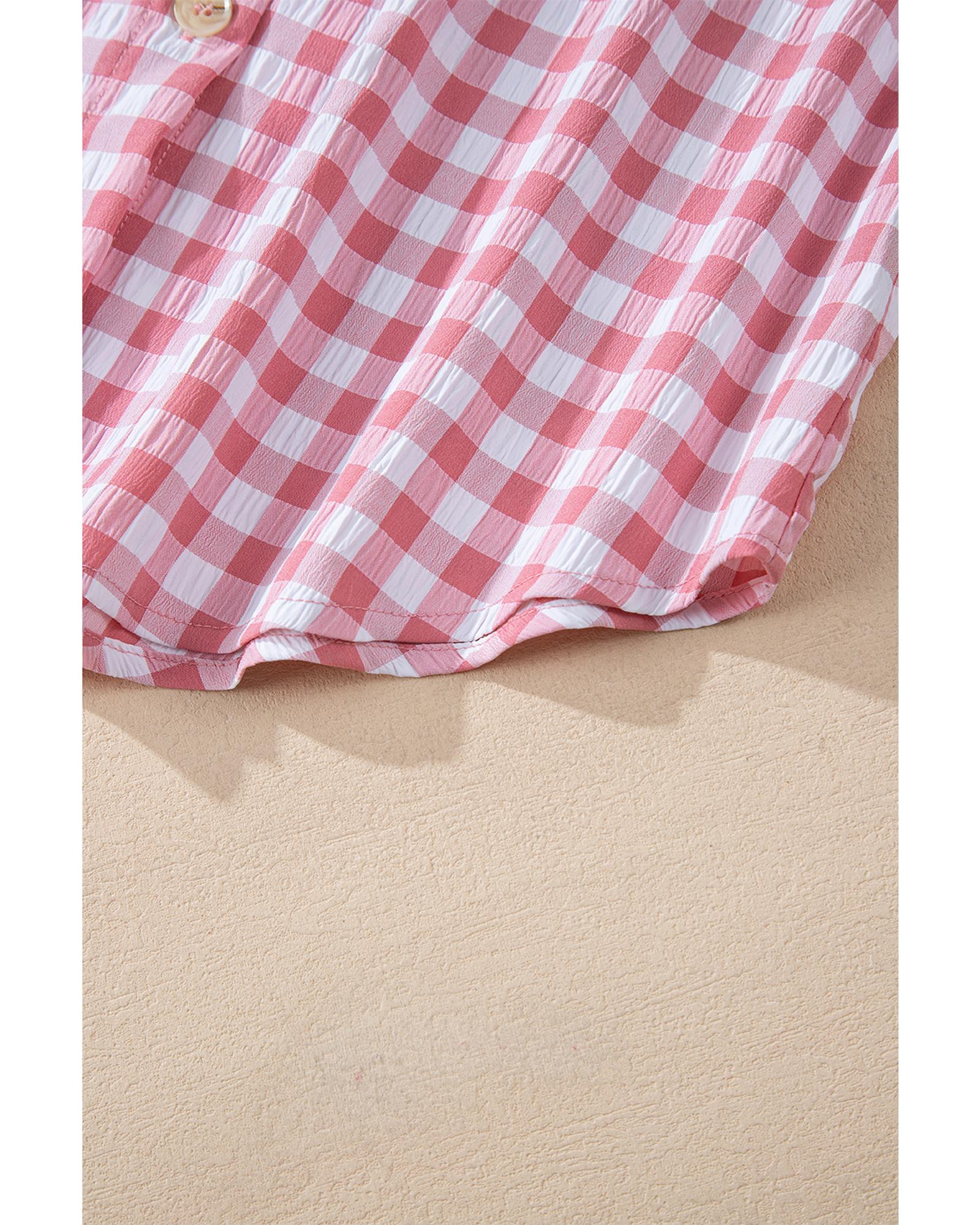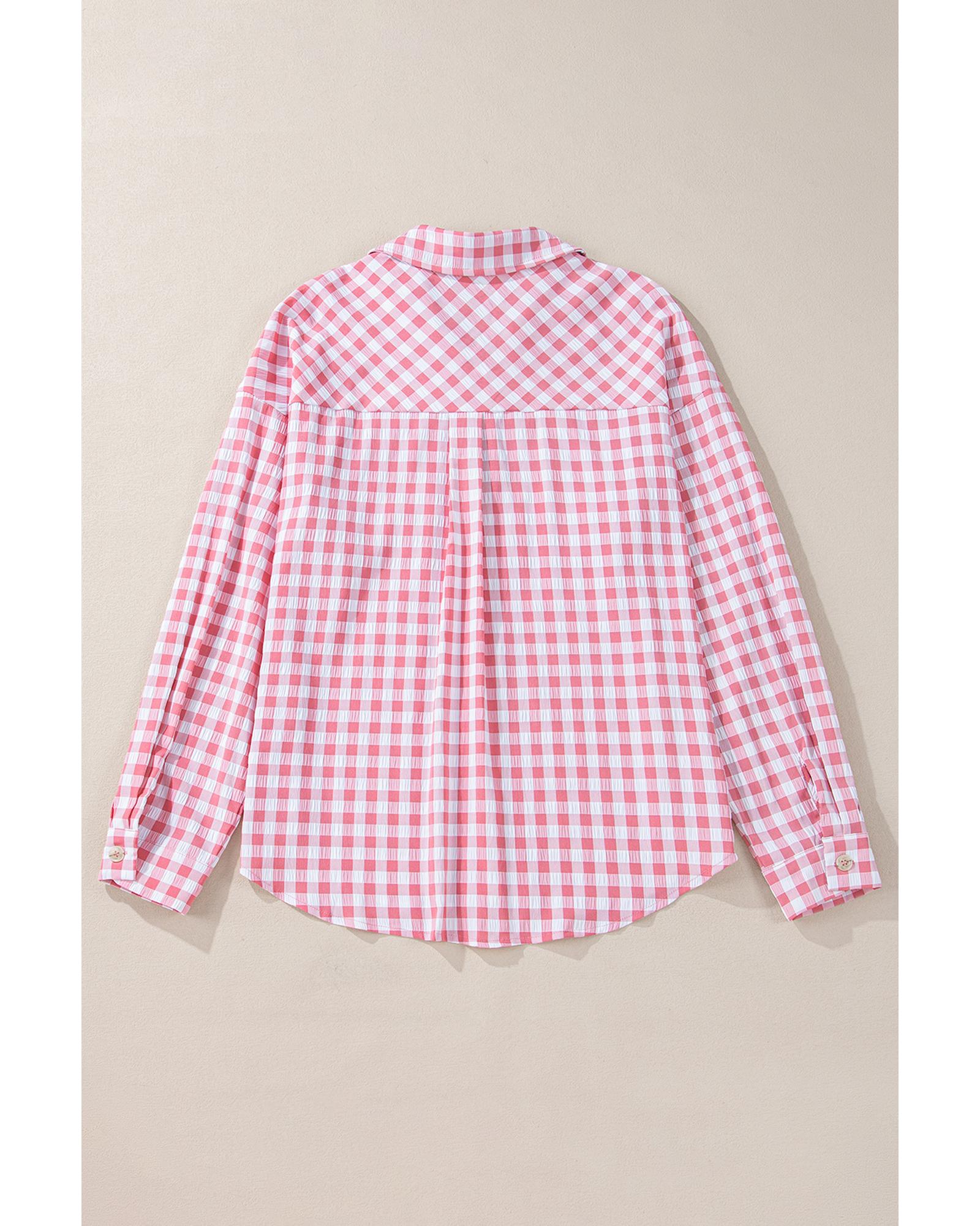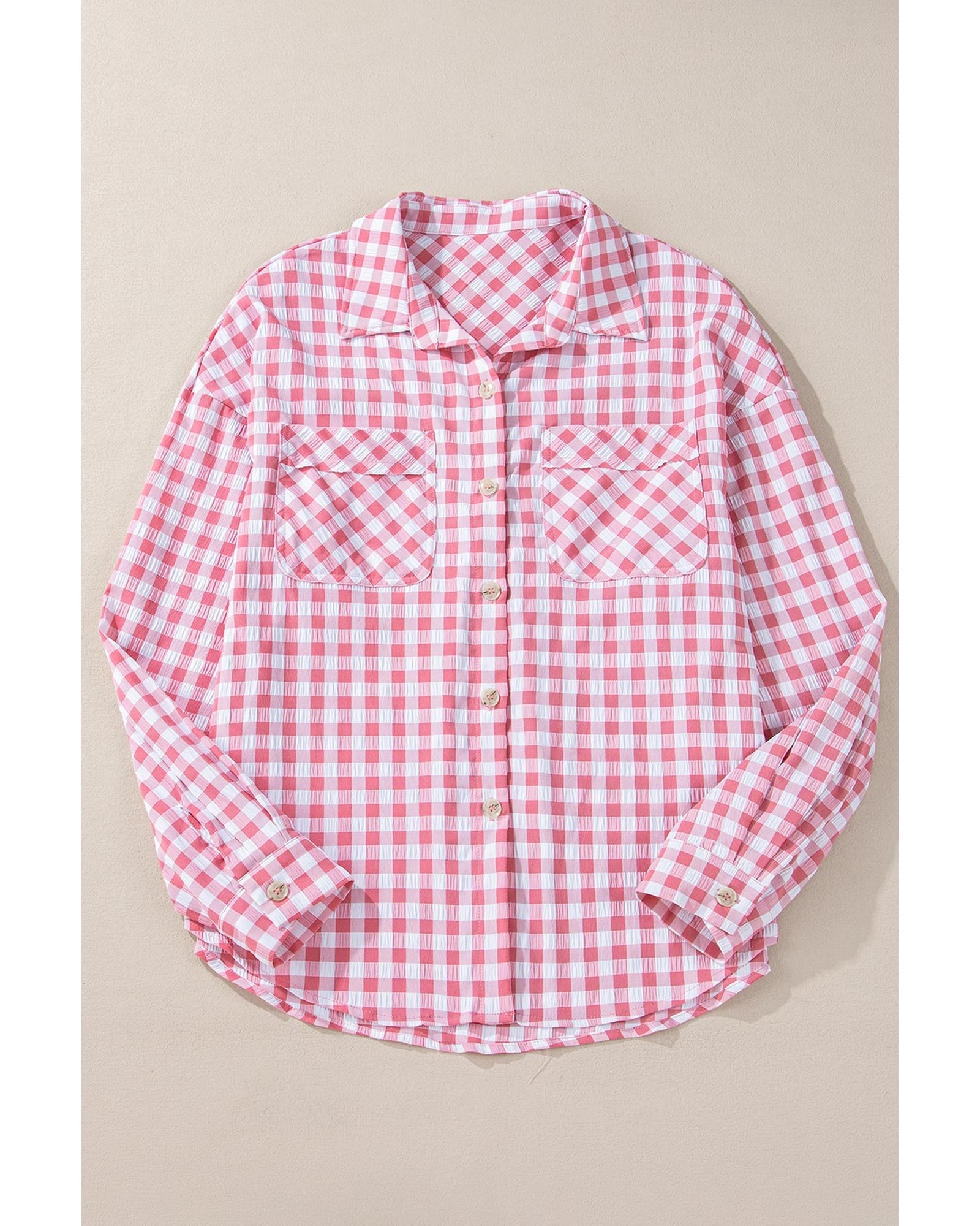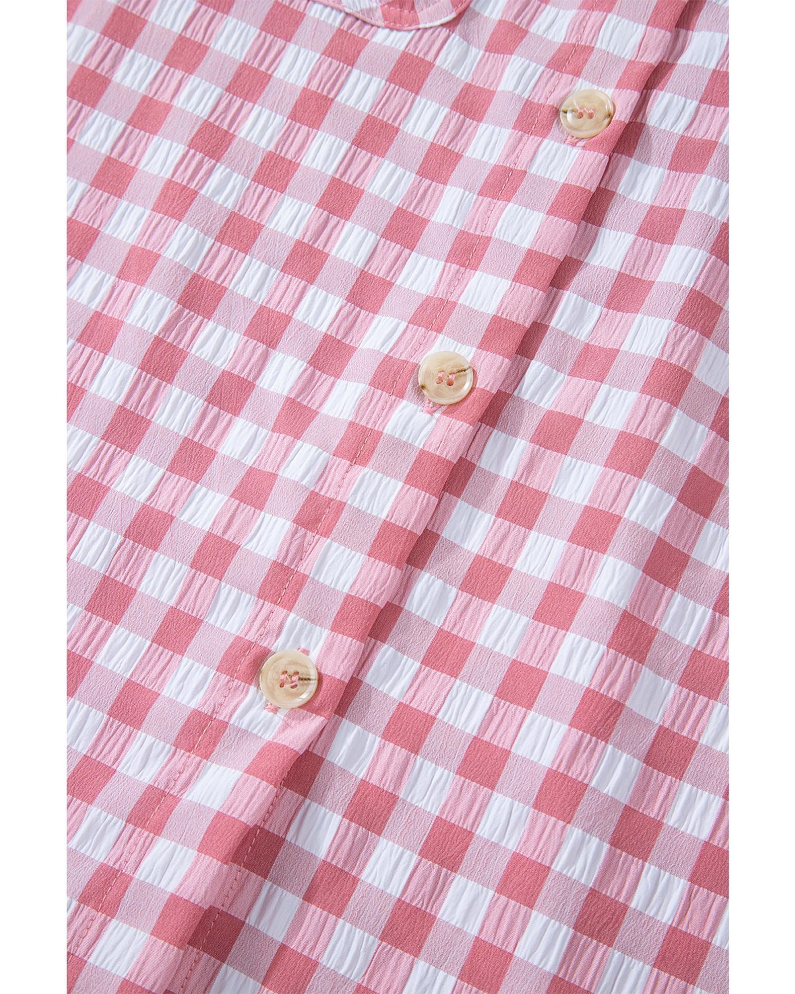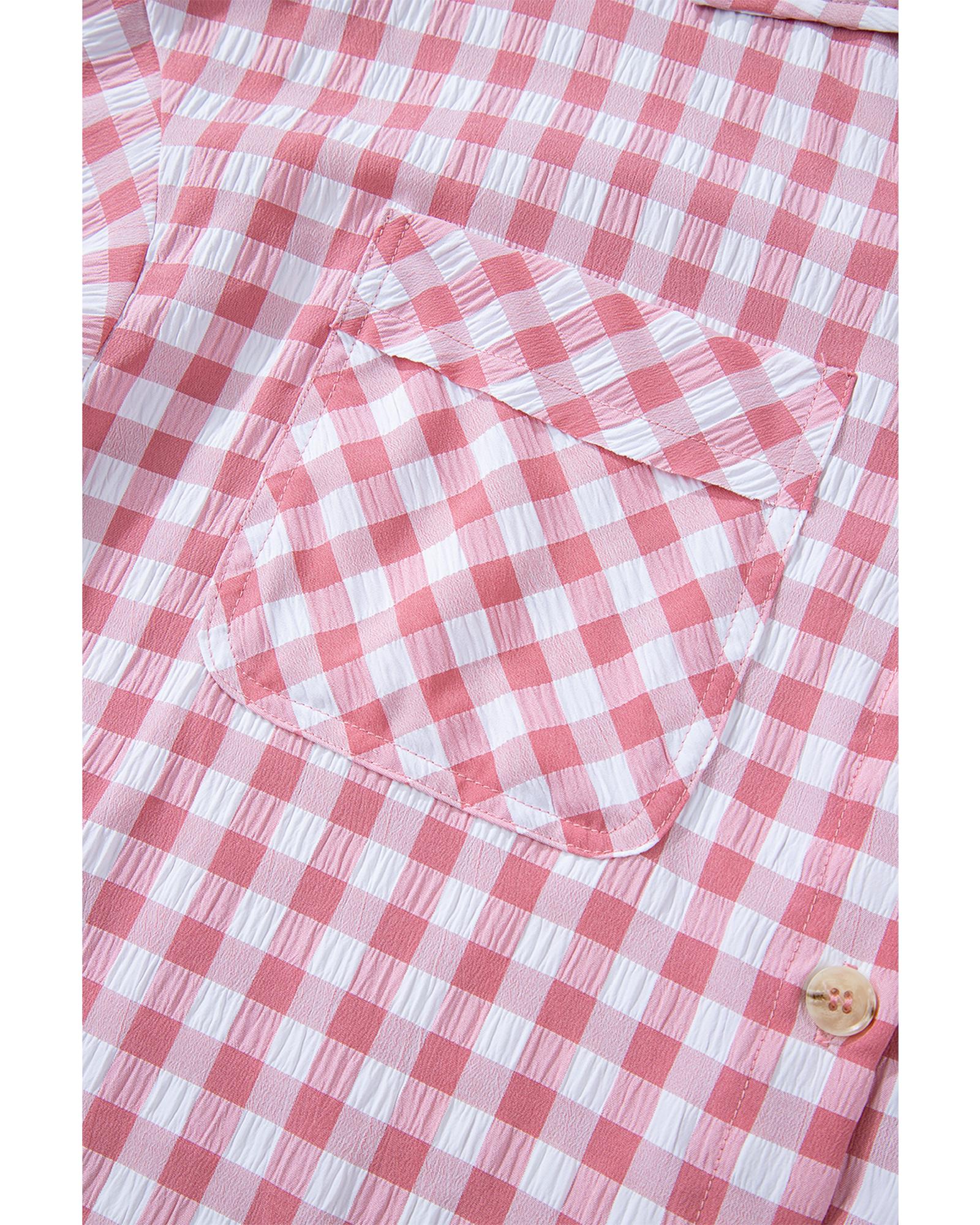Pink Gingham Print Chest Pockets Buttoned Collared Shirt - S