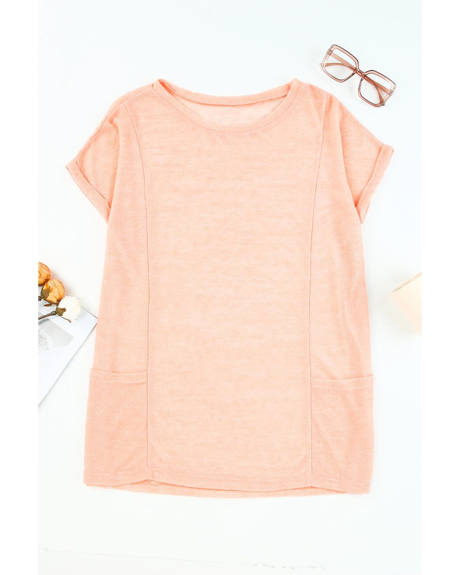 Pink Loose Fit Pockets Short Sleeve Beach Cover Up - L