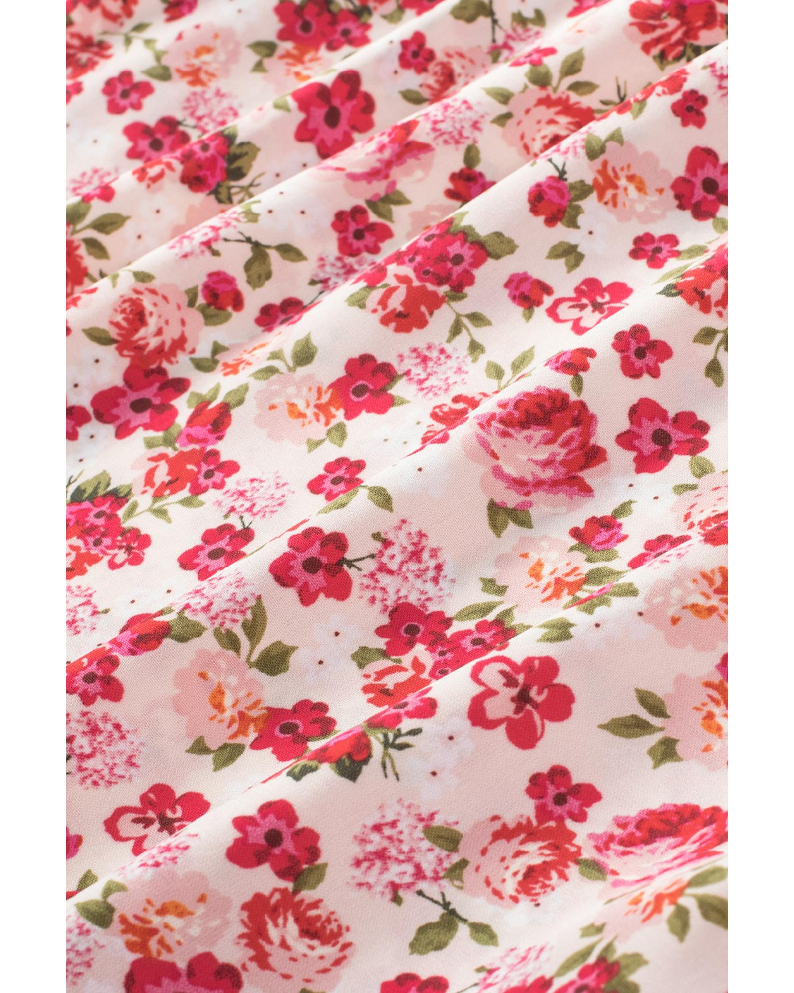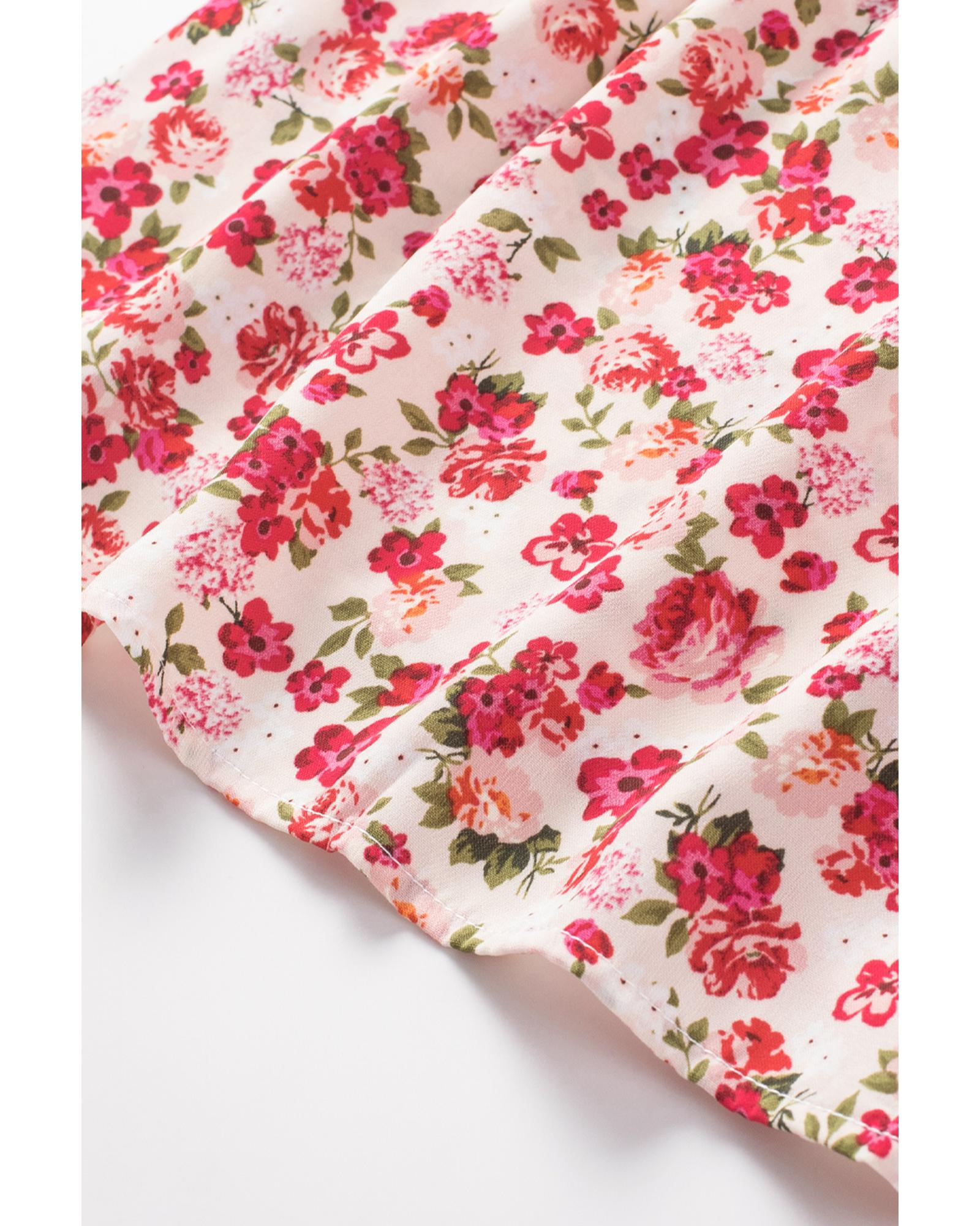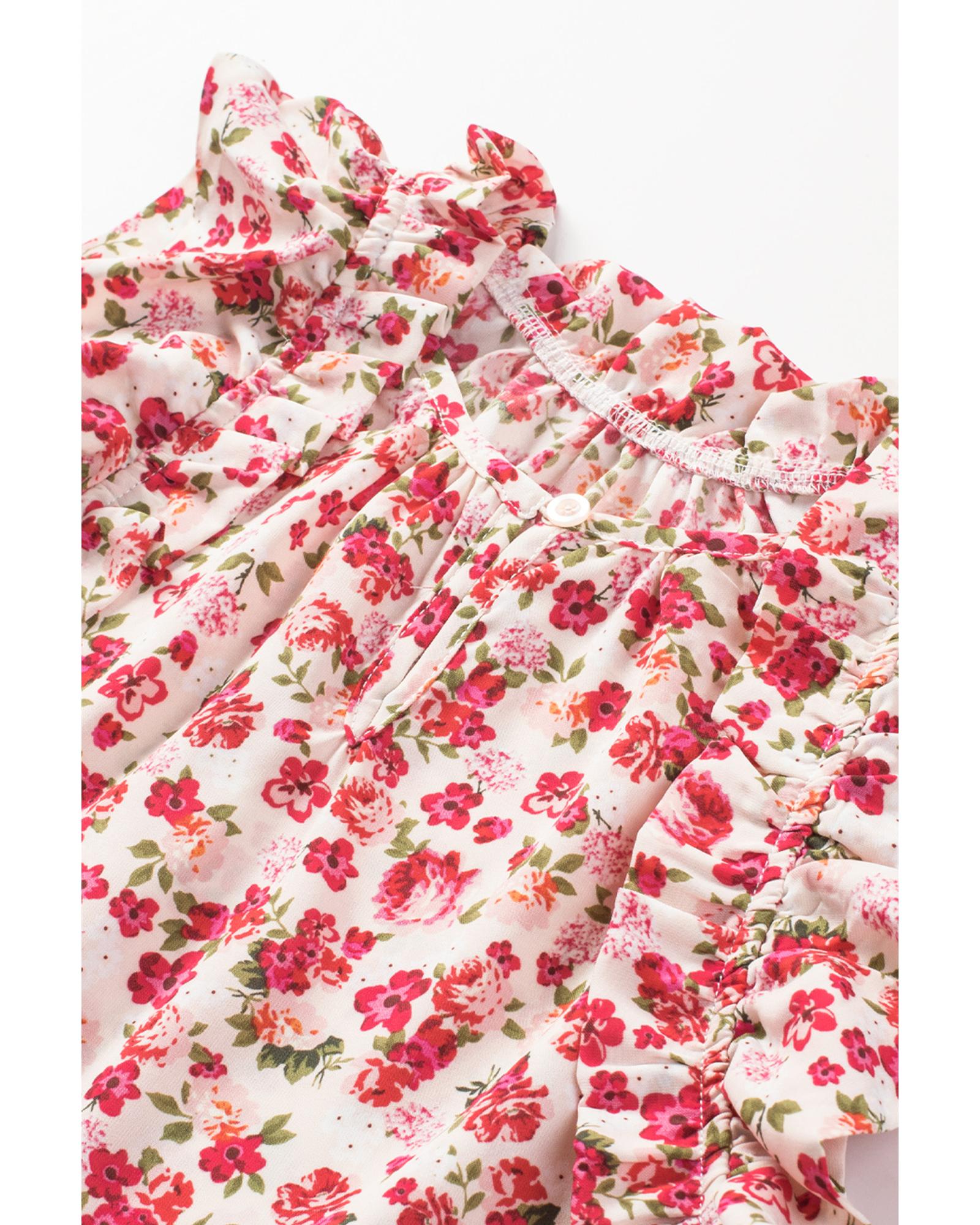 Red Floral Print Ruffled Mock Neck Sleeveless Top - L