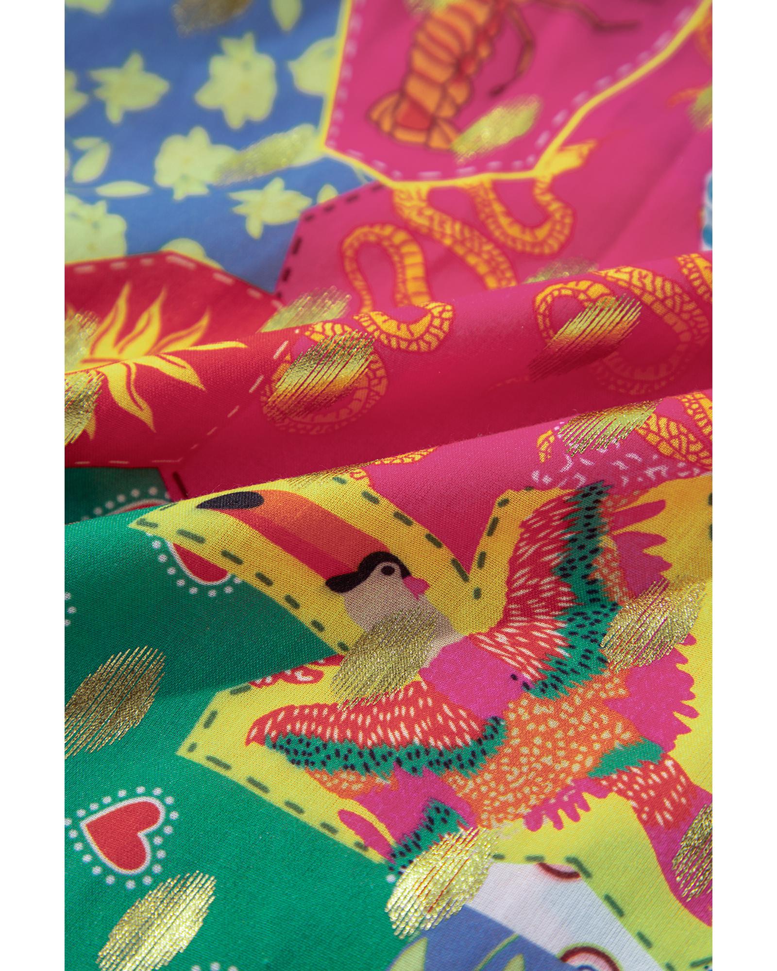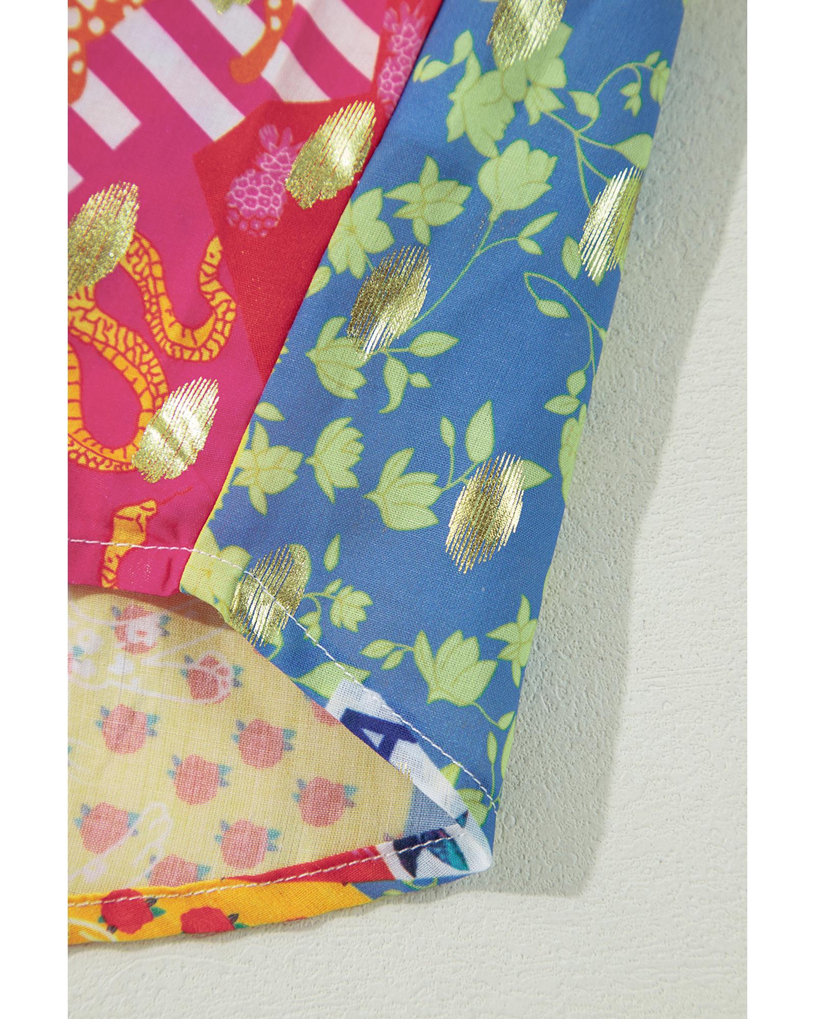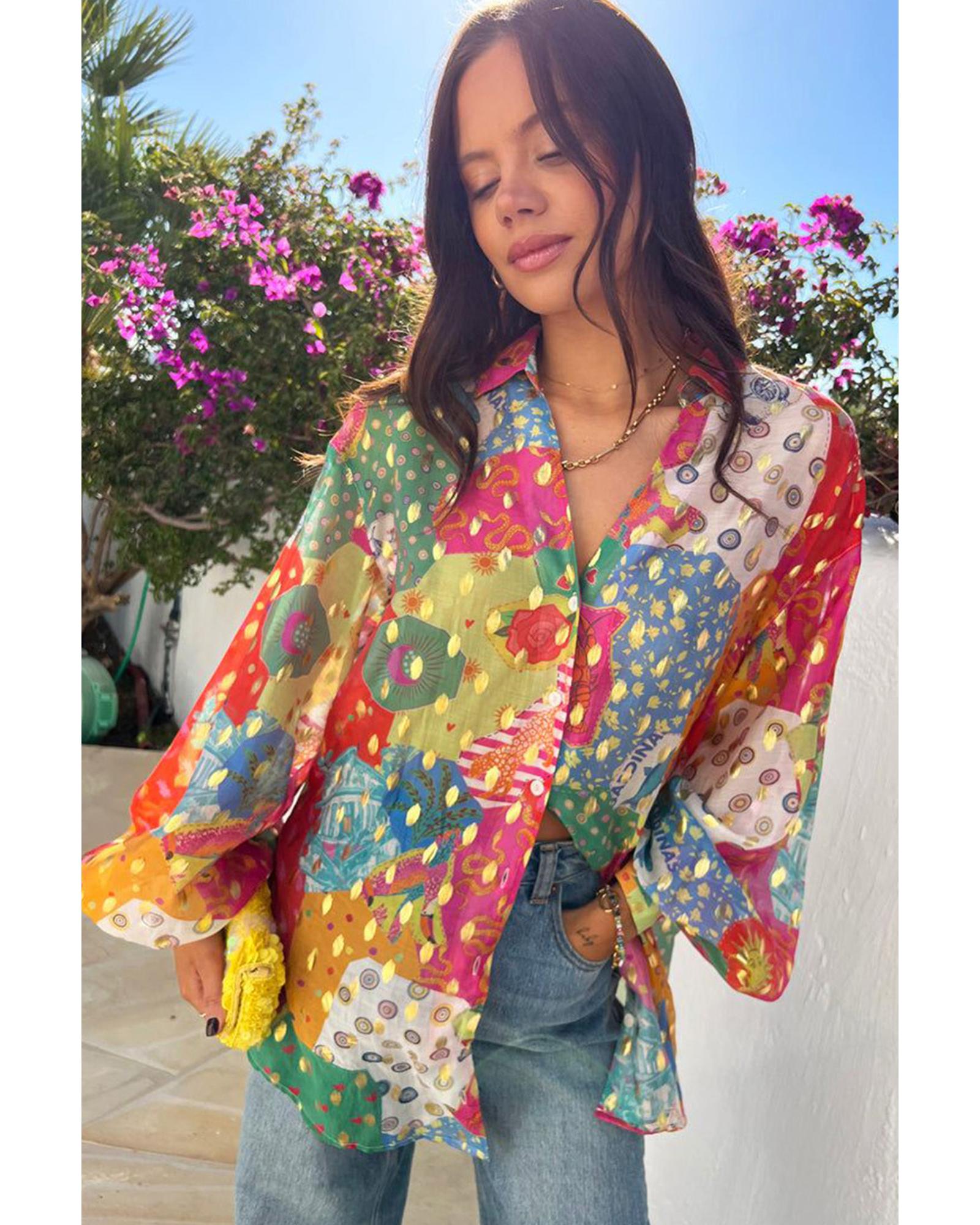 Rose Red Colorblock Abstract Print Button up Loose Shirt - XL