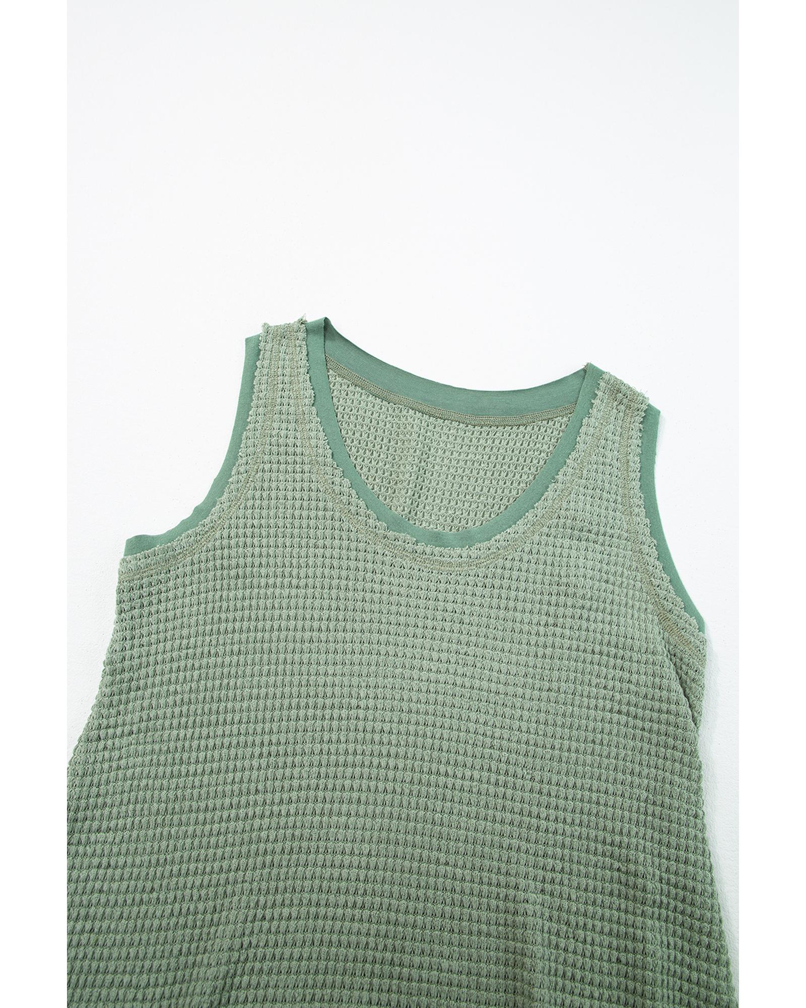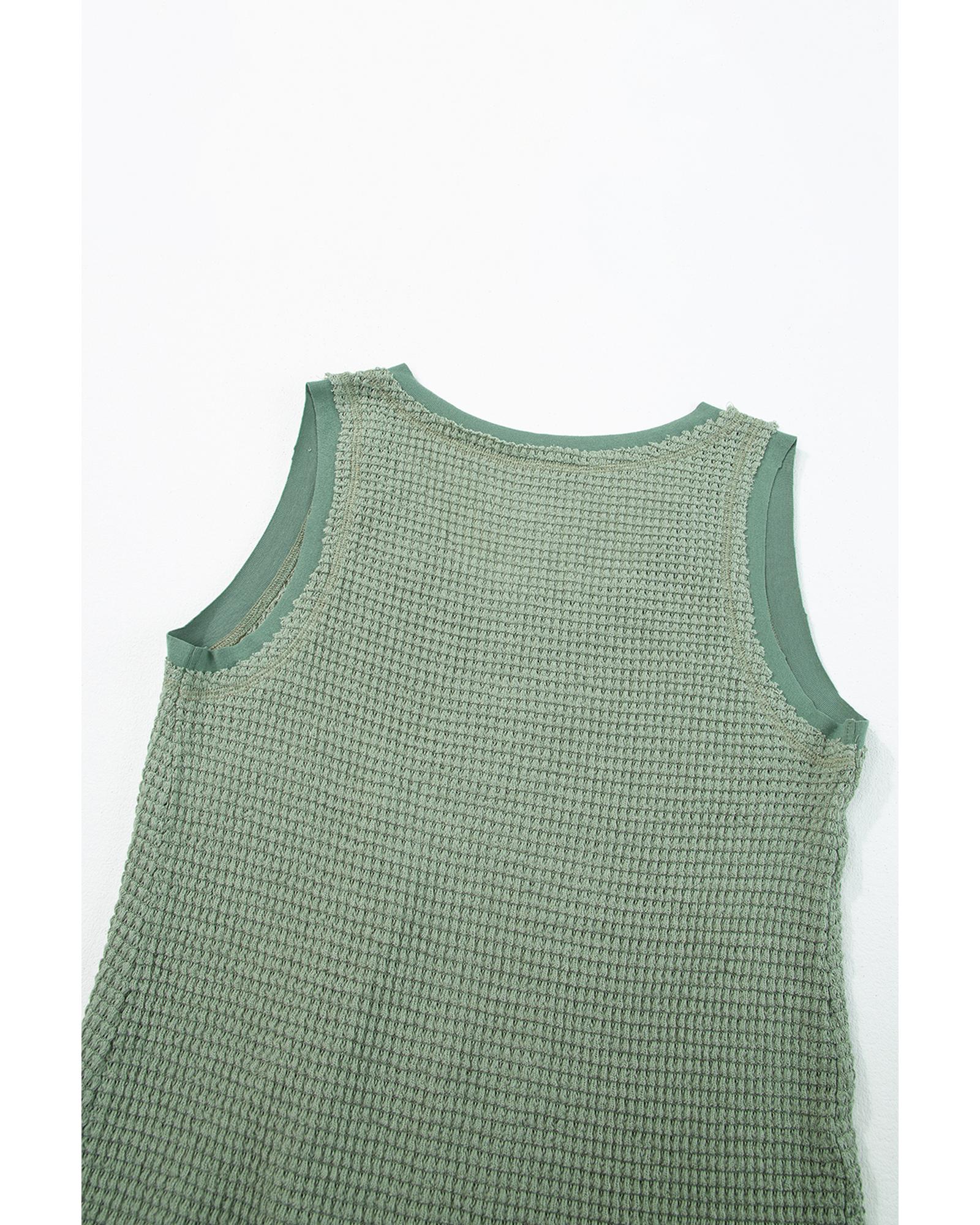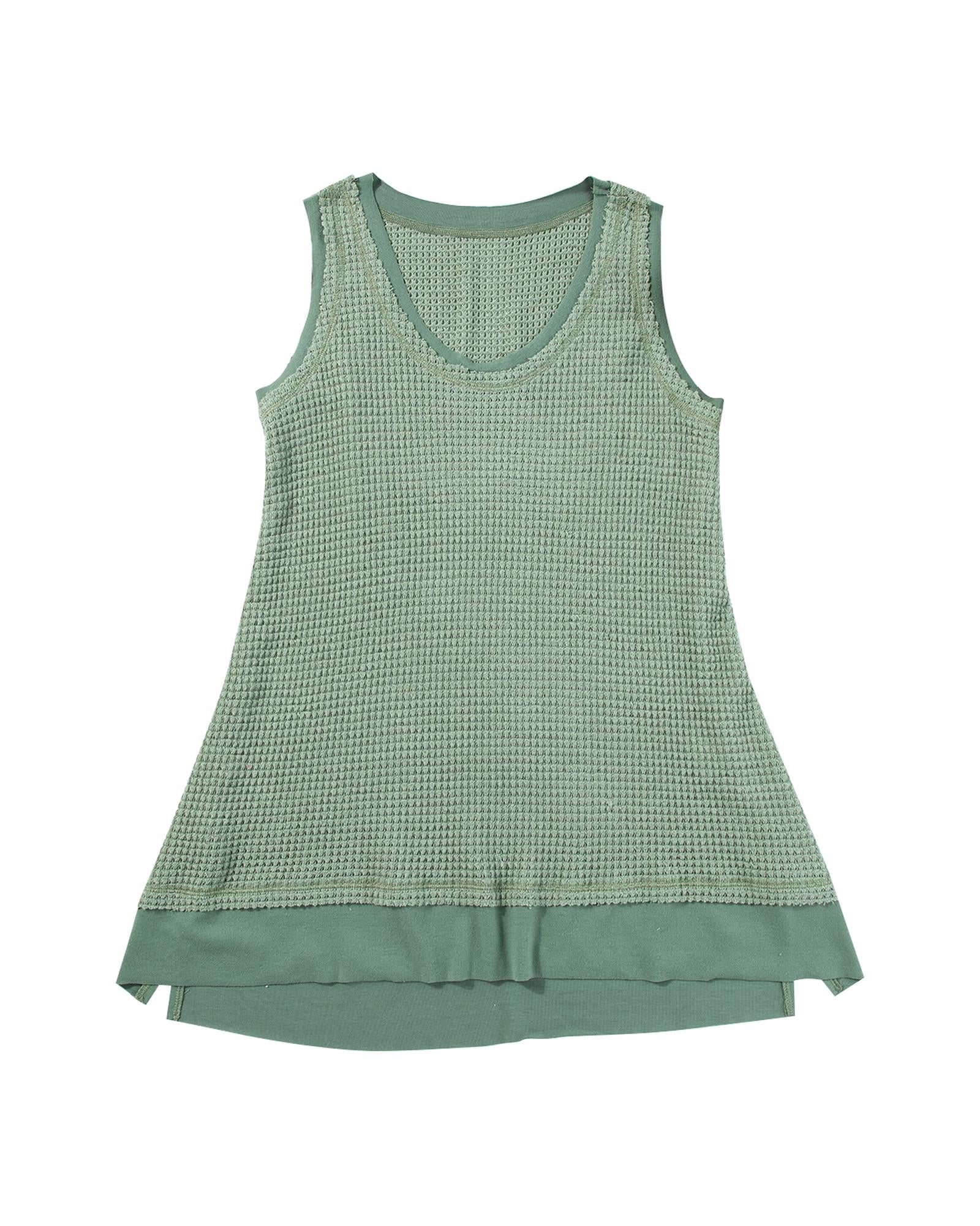 Sea Green Scoop Neck Waffle Knit Flowy Vest - S