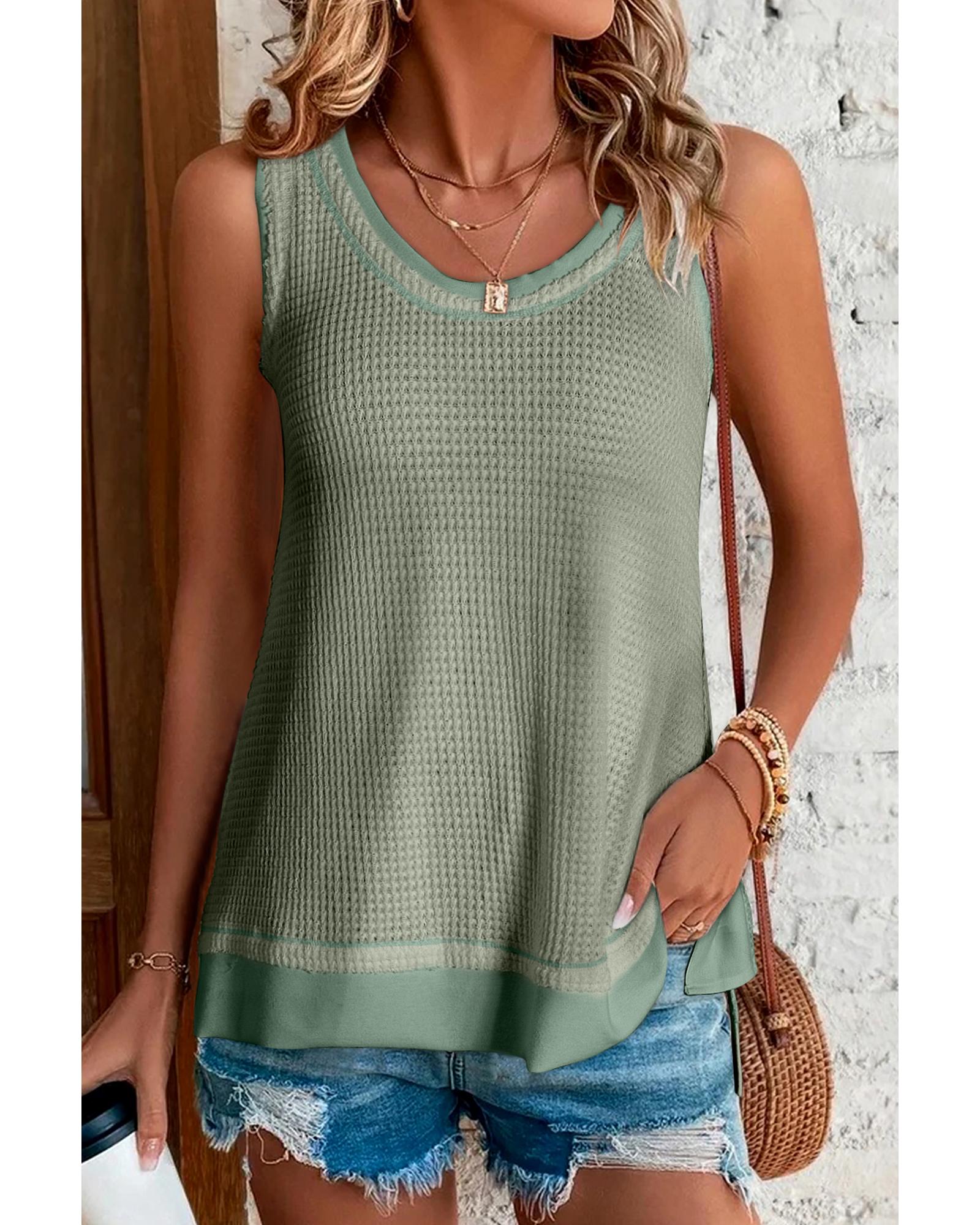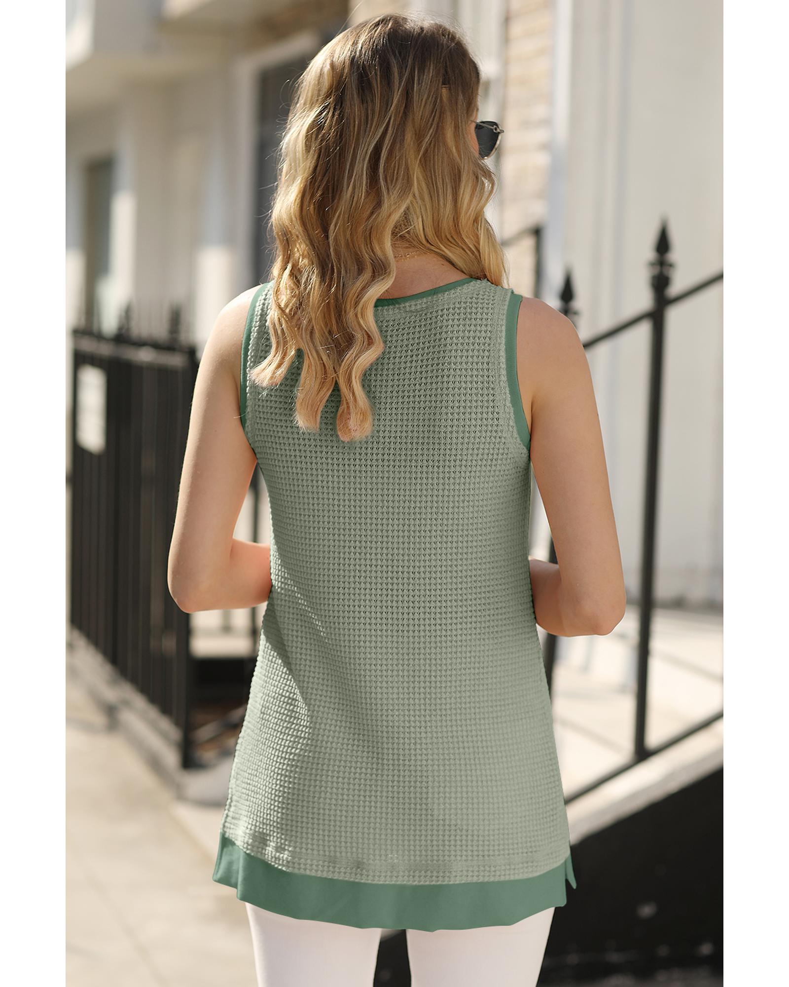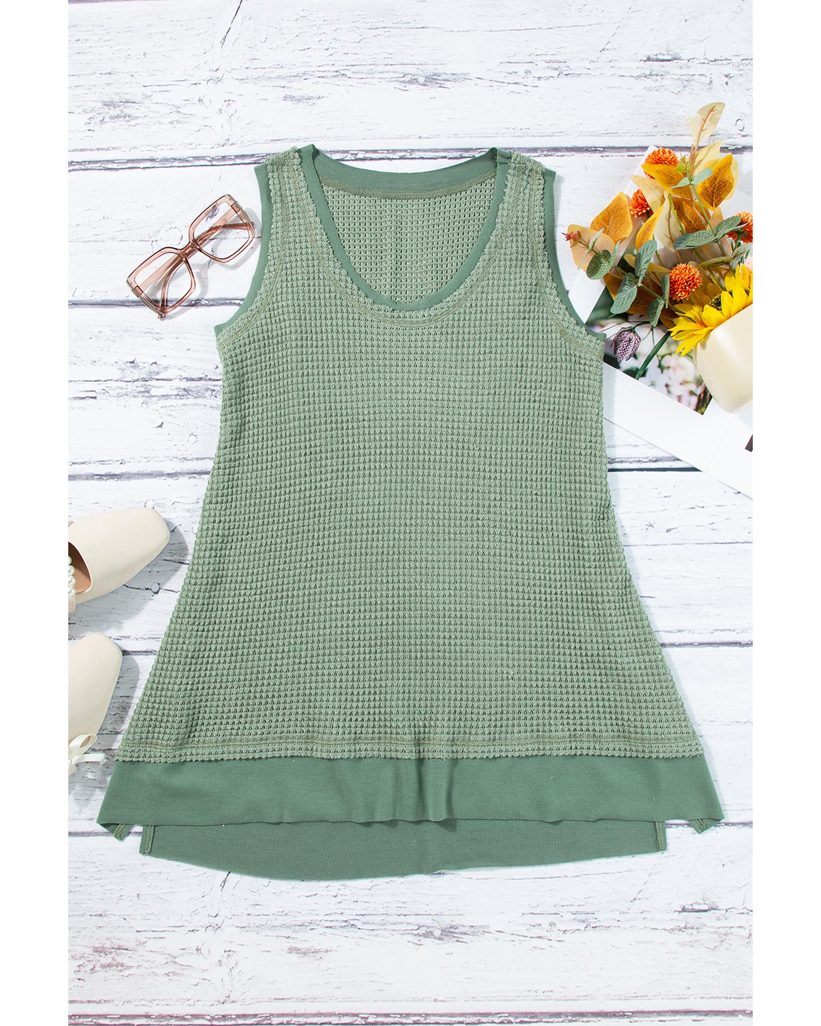 Sea Green Scoop Neck Waffle Knit Flowy Vest - S