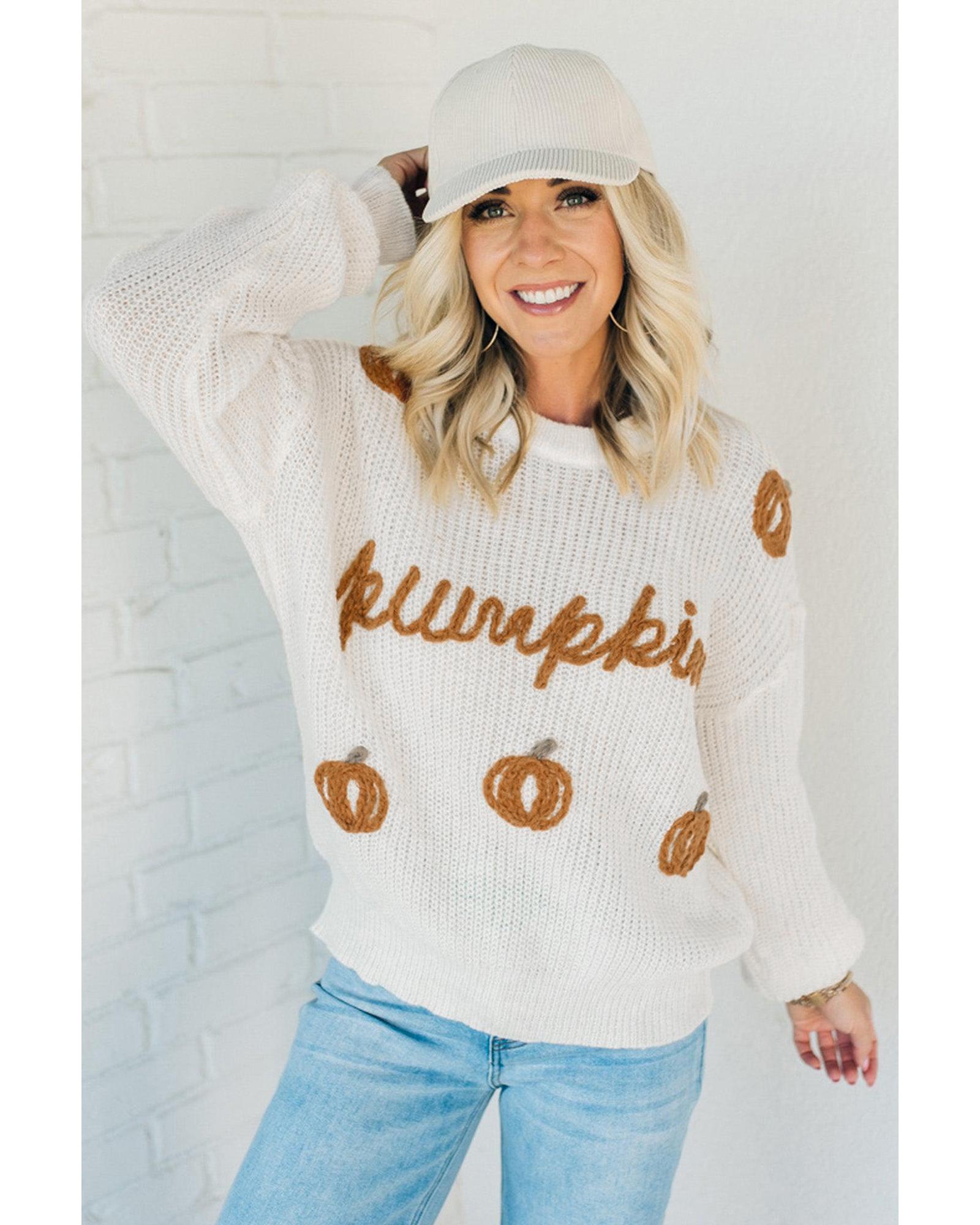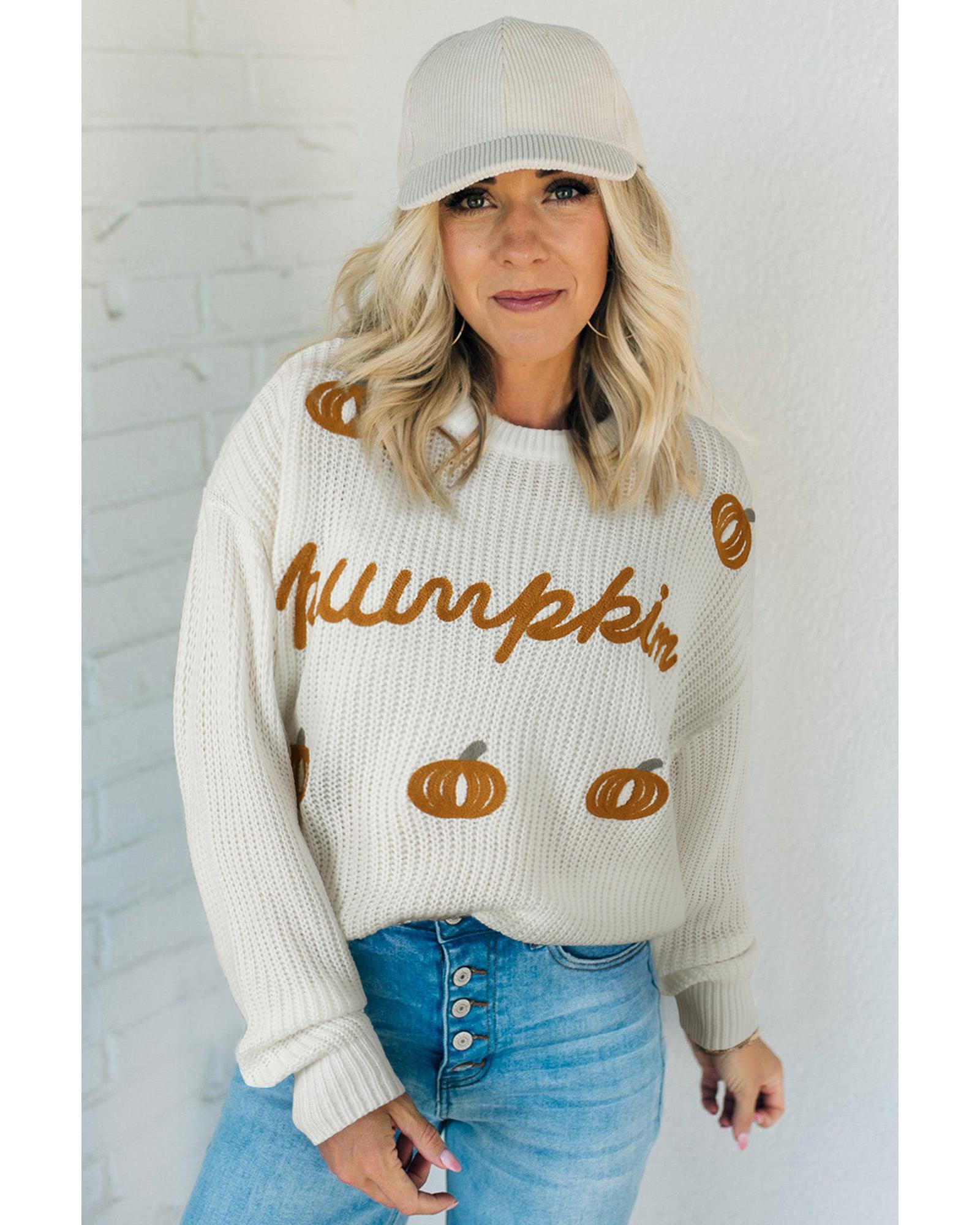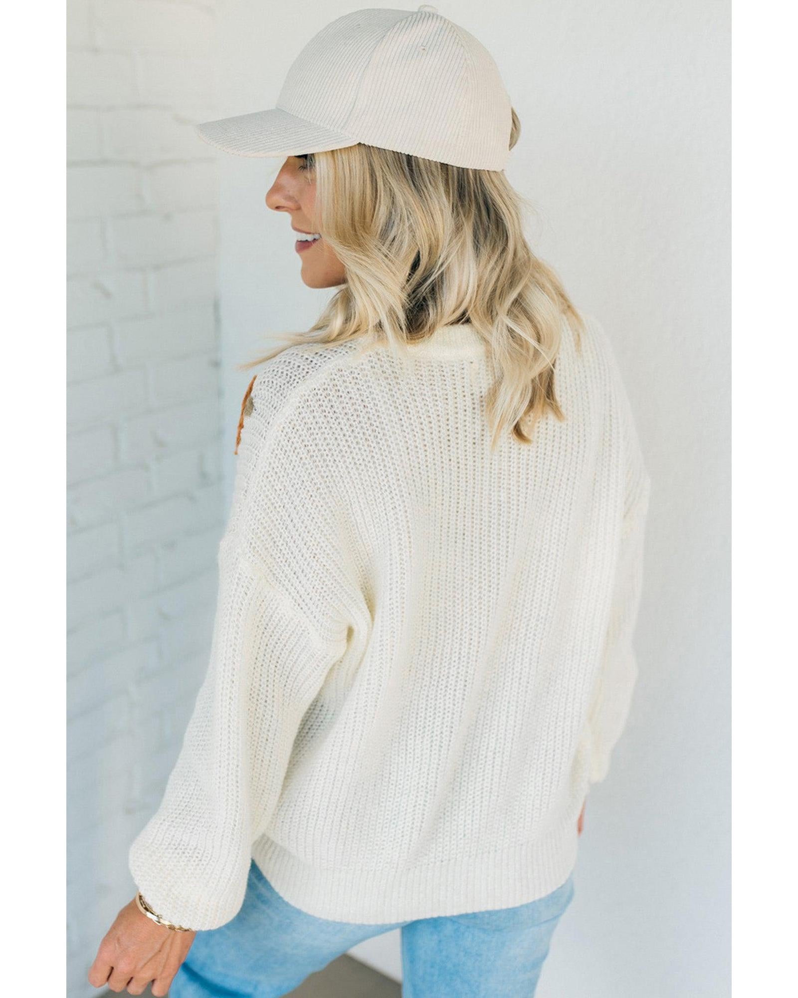 White Pumpkin Yarn Stitch Ribbed Knit Sweater - L