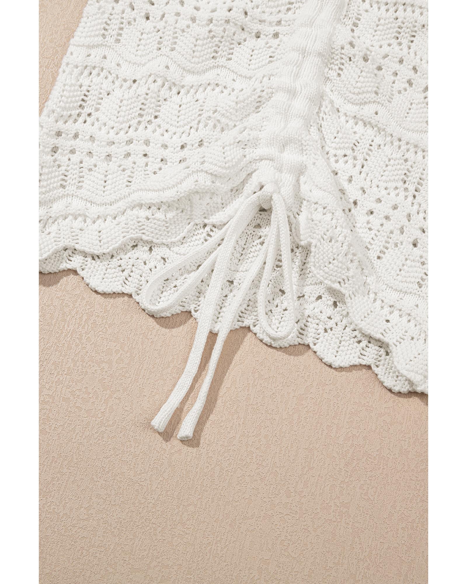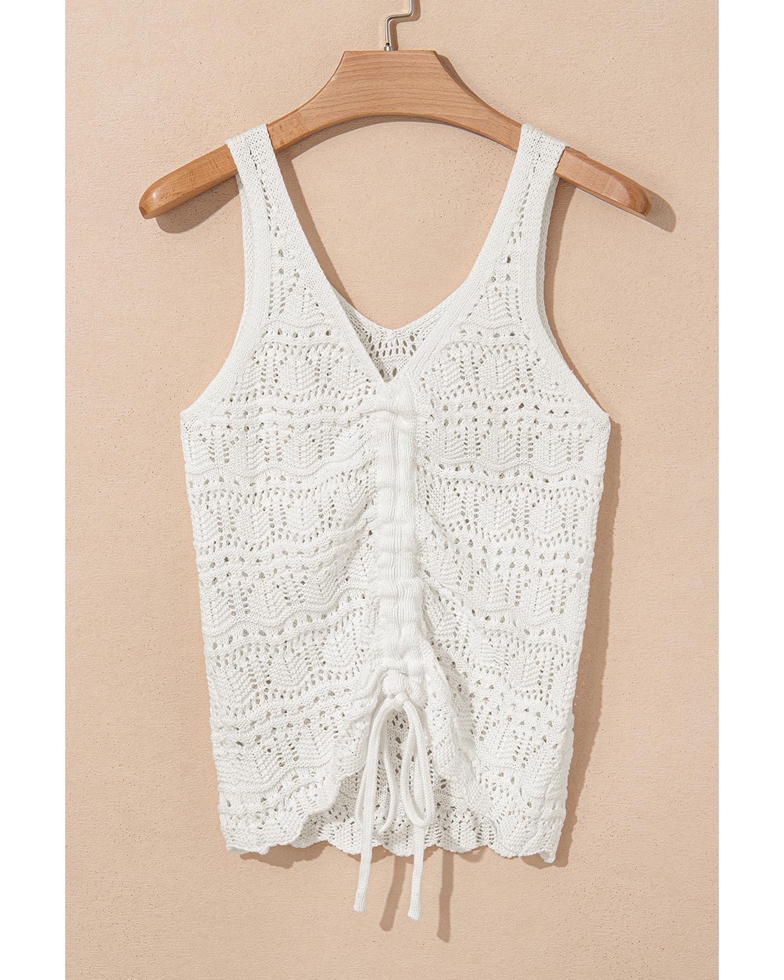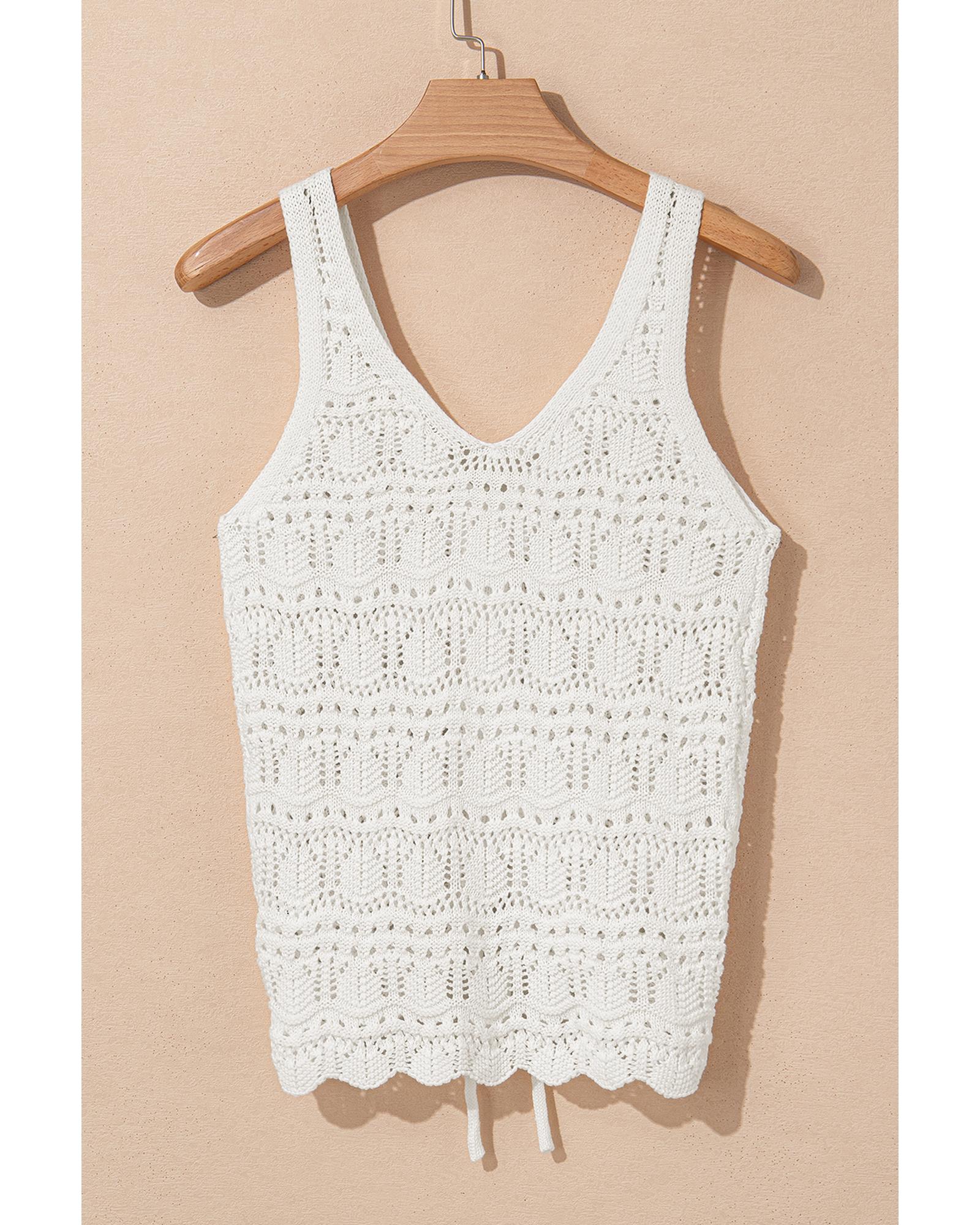 Beige Trendy Hollowed Knit V Neck Drawstring Sweater Vest - S