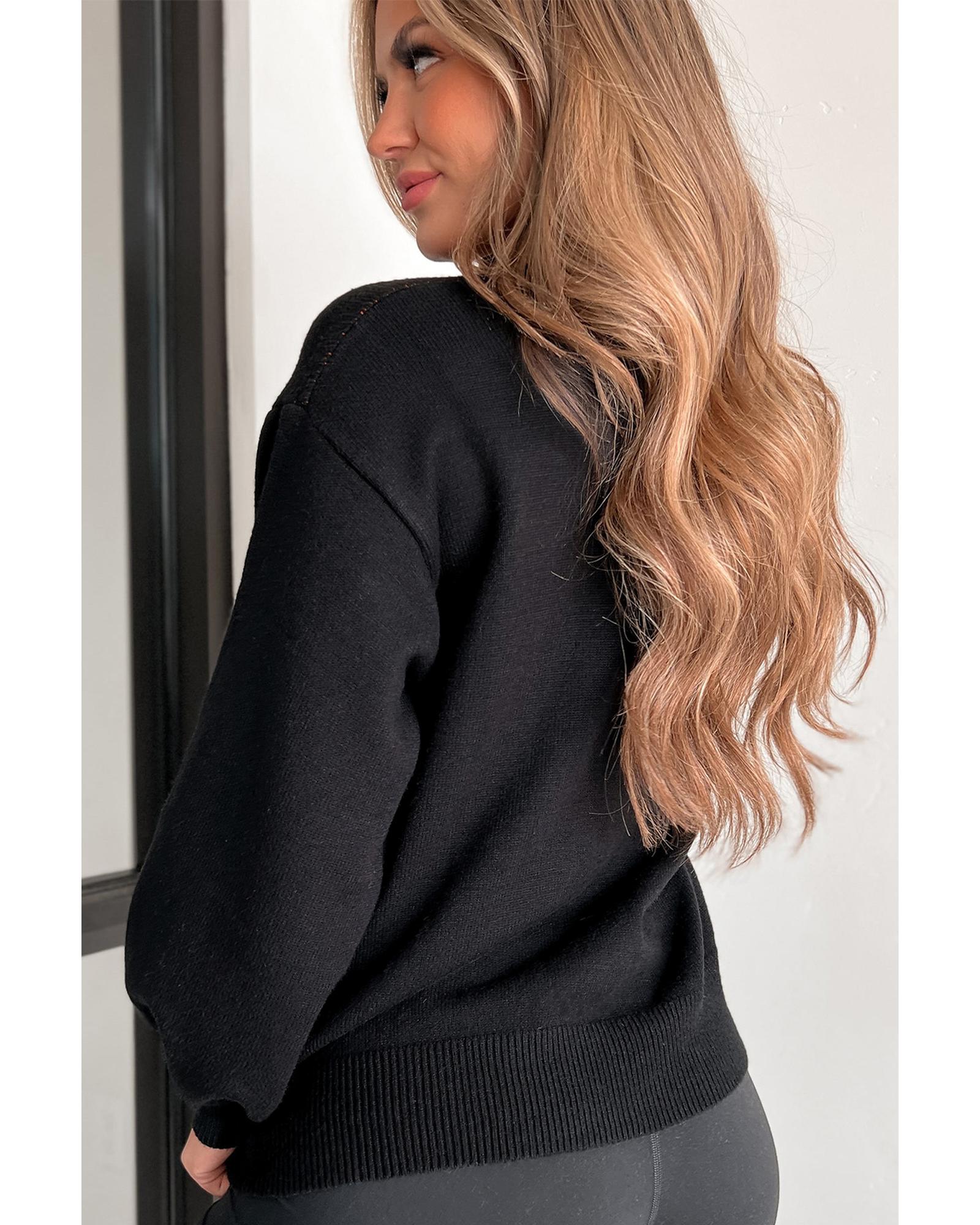 Black Halloween Pumpkin Face Pattern Drop Shoulder Sweater - S