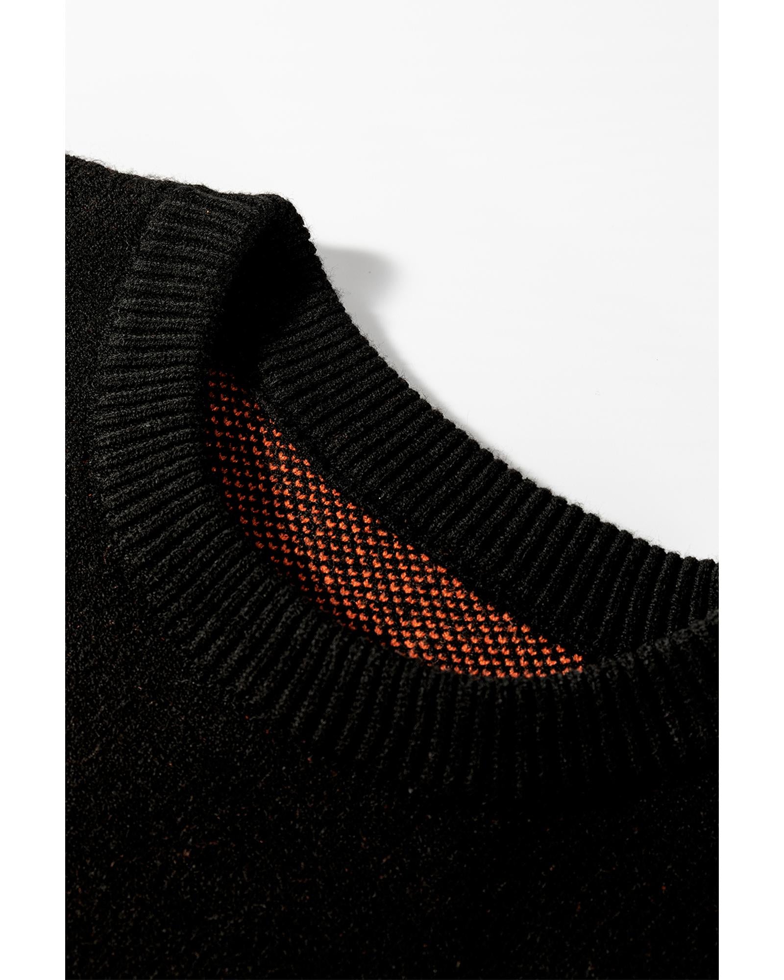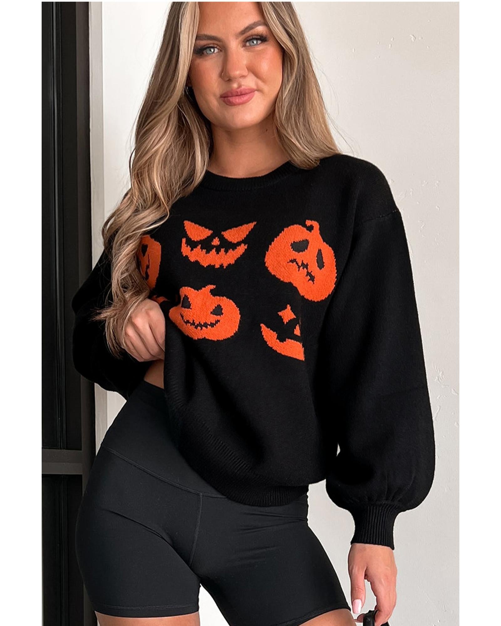 Black Halloween Pumpkin Face Pattern Drop Shoulder Sweater - XL