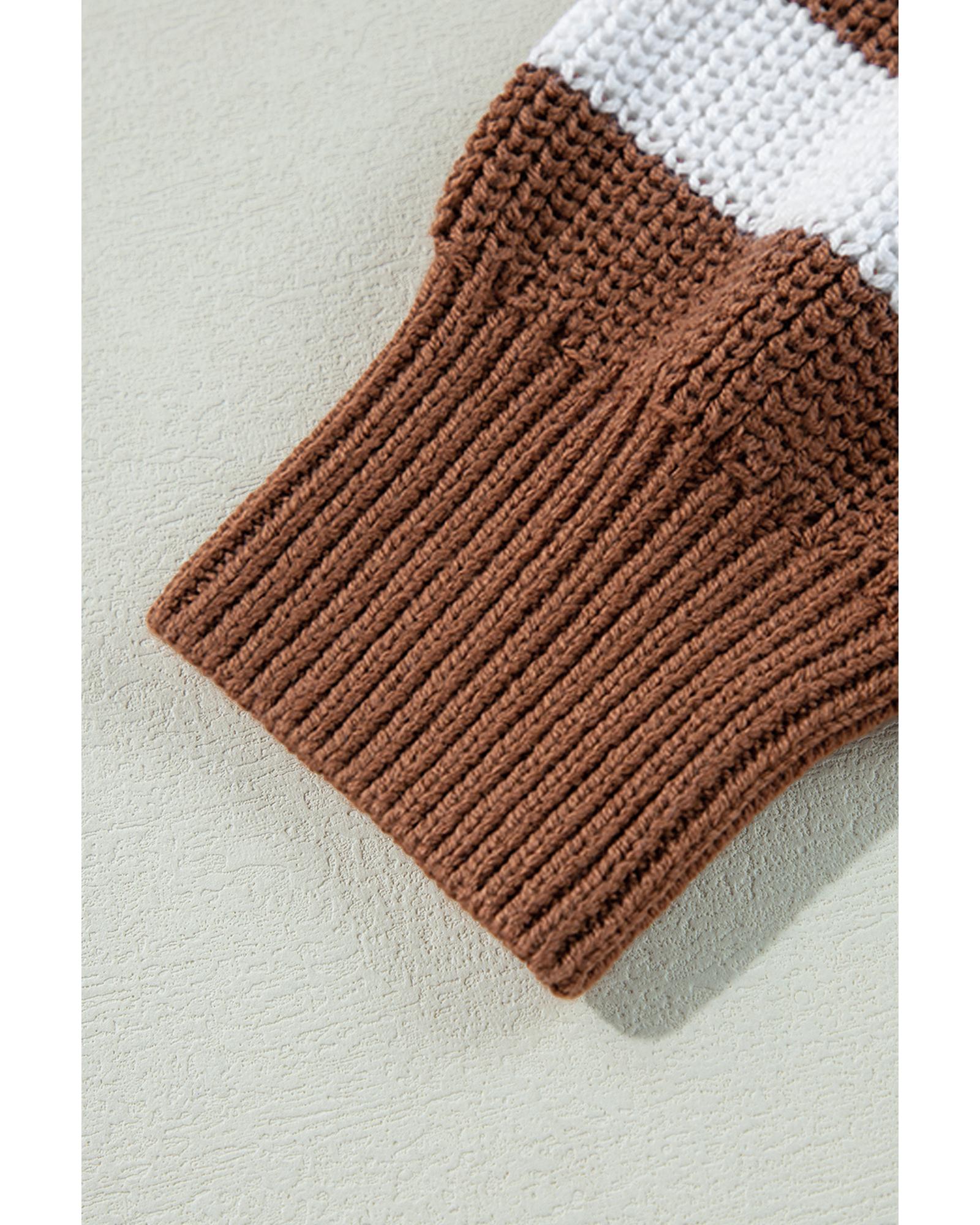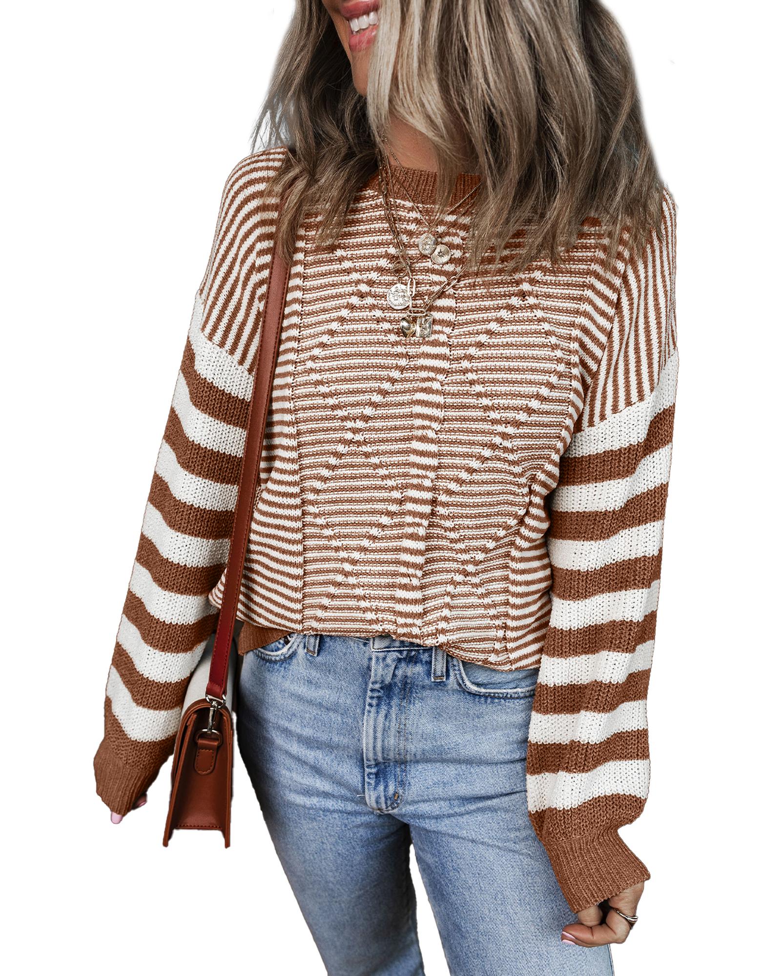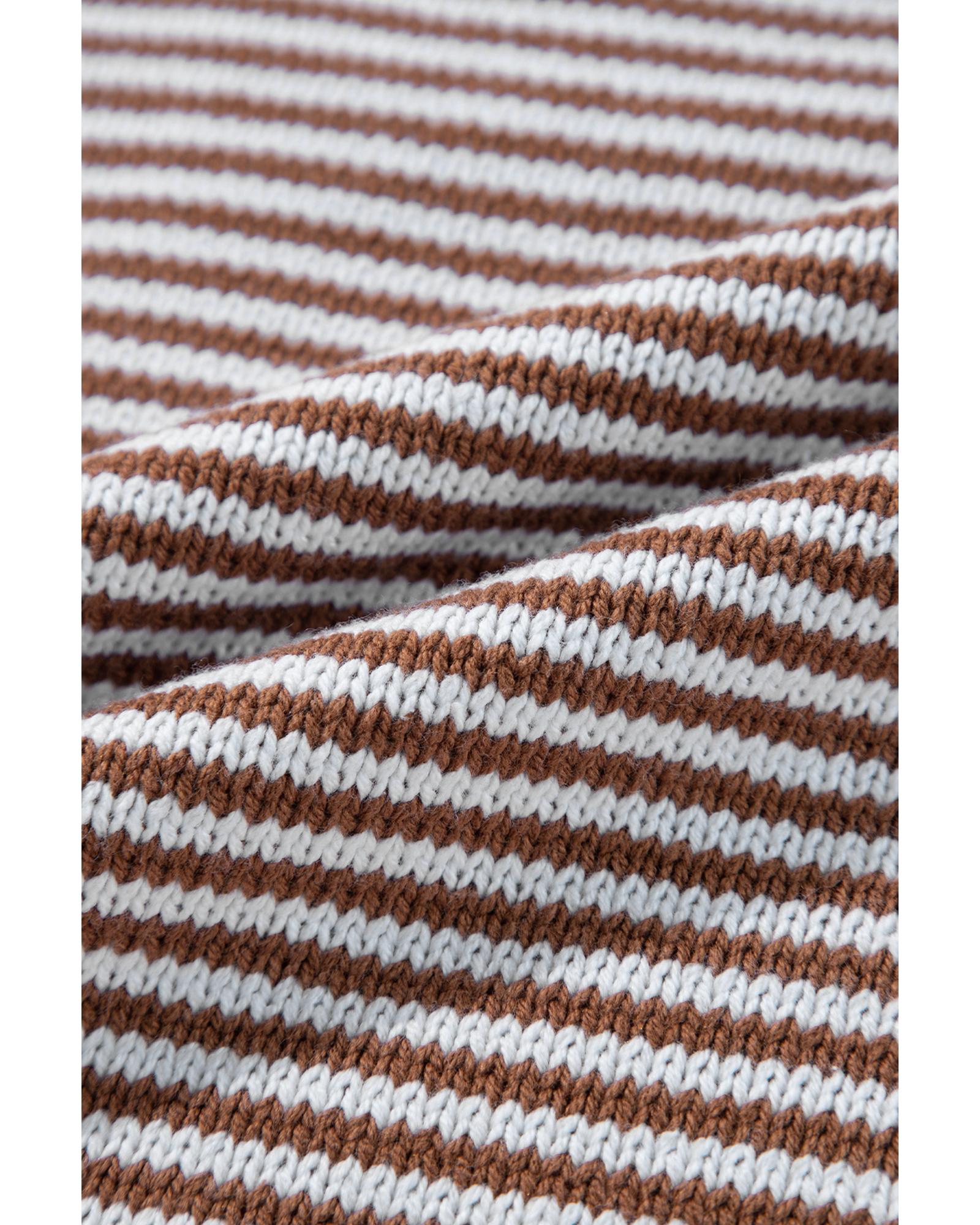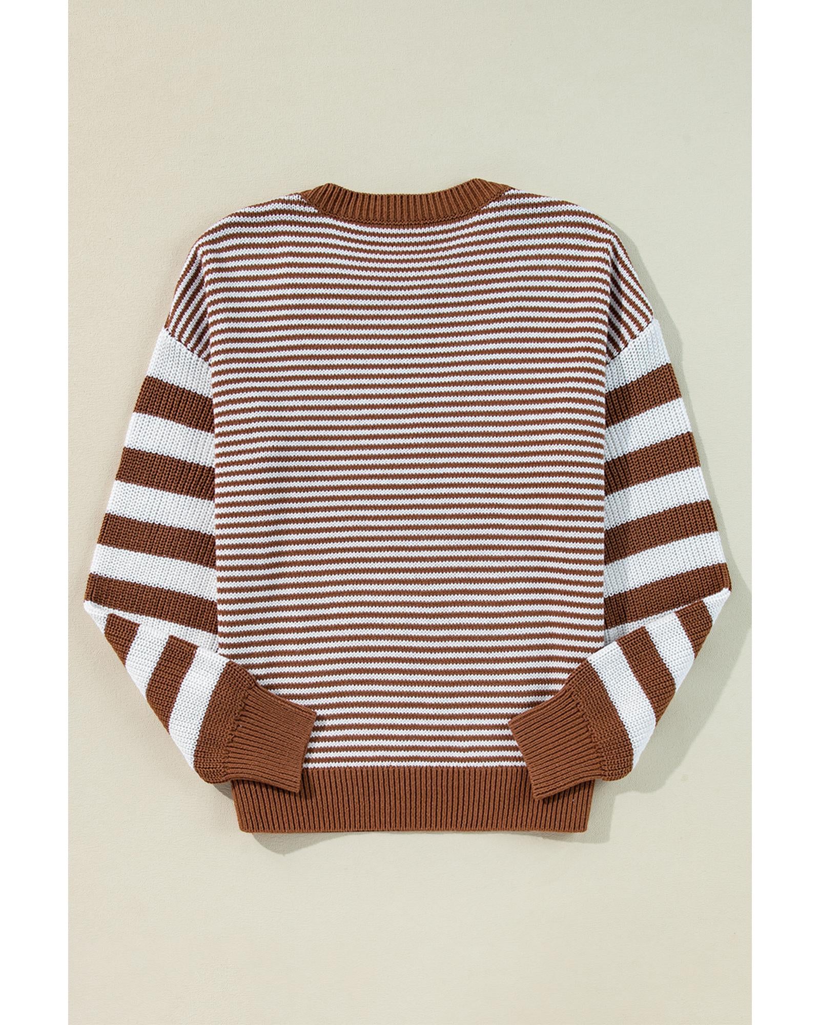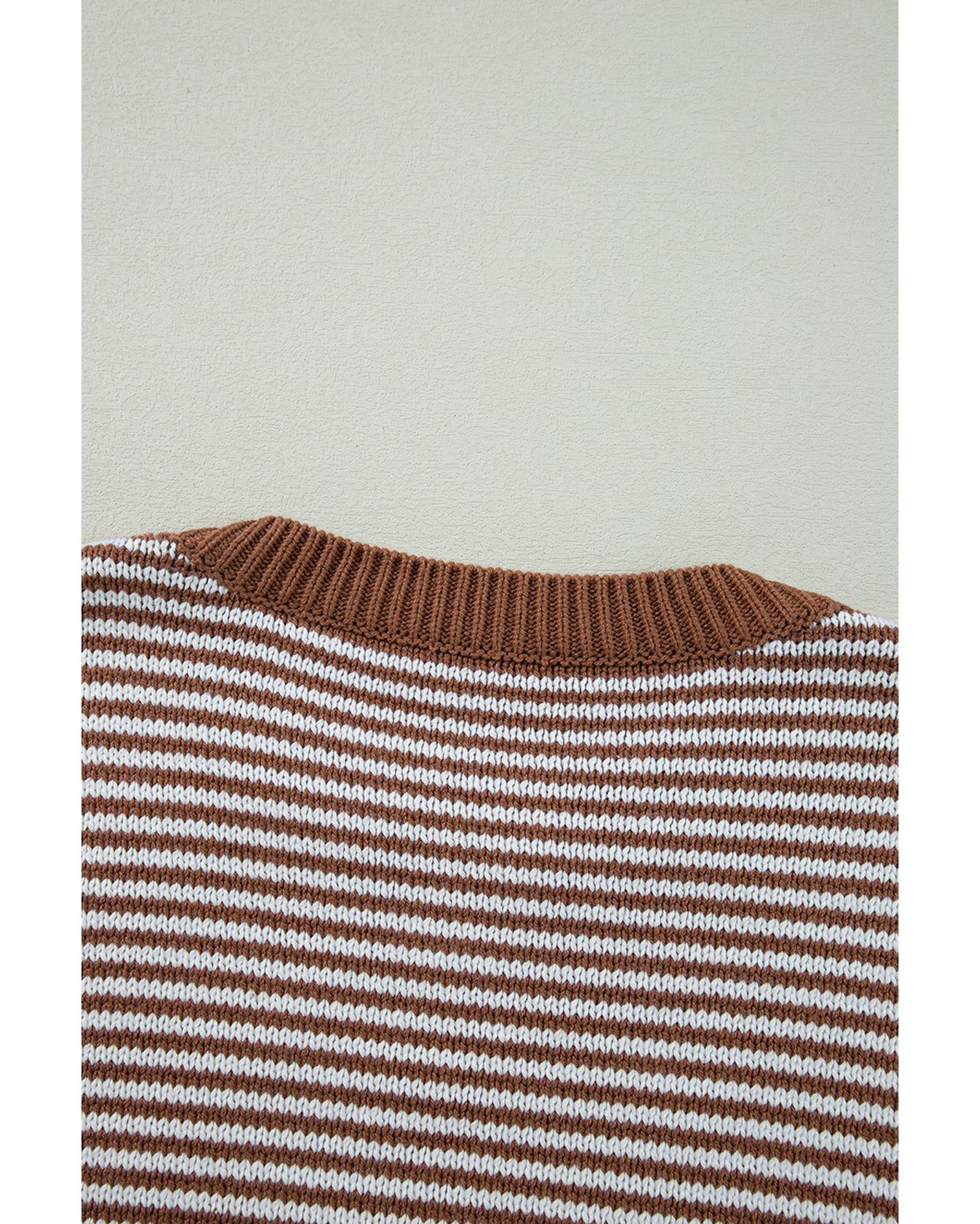 Brown Stripe Geometric Textured Drop Shoulder Sweater - S