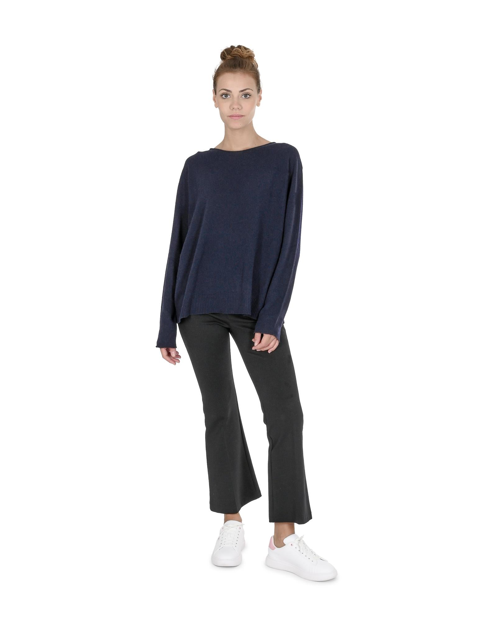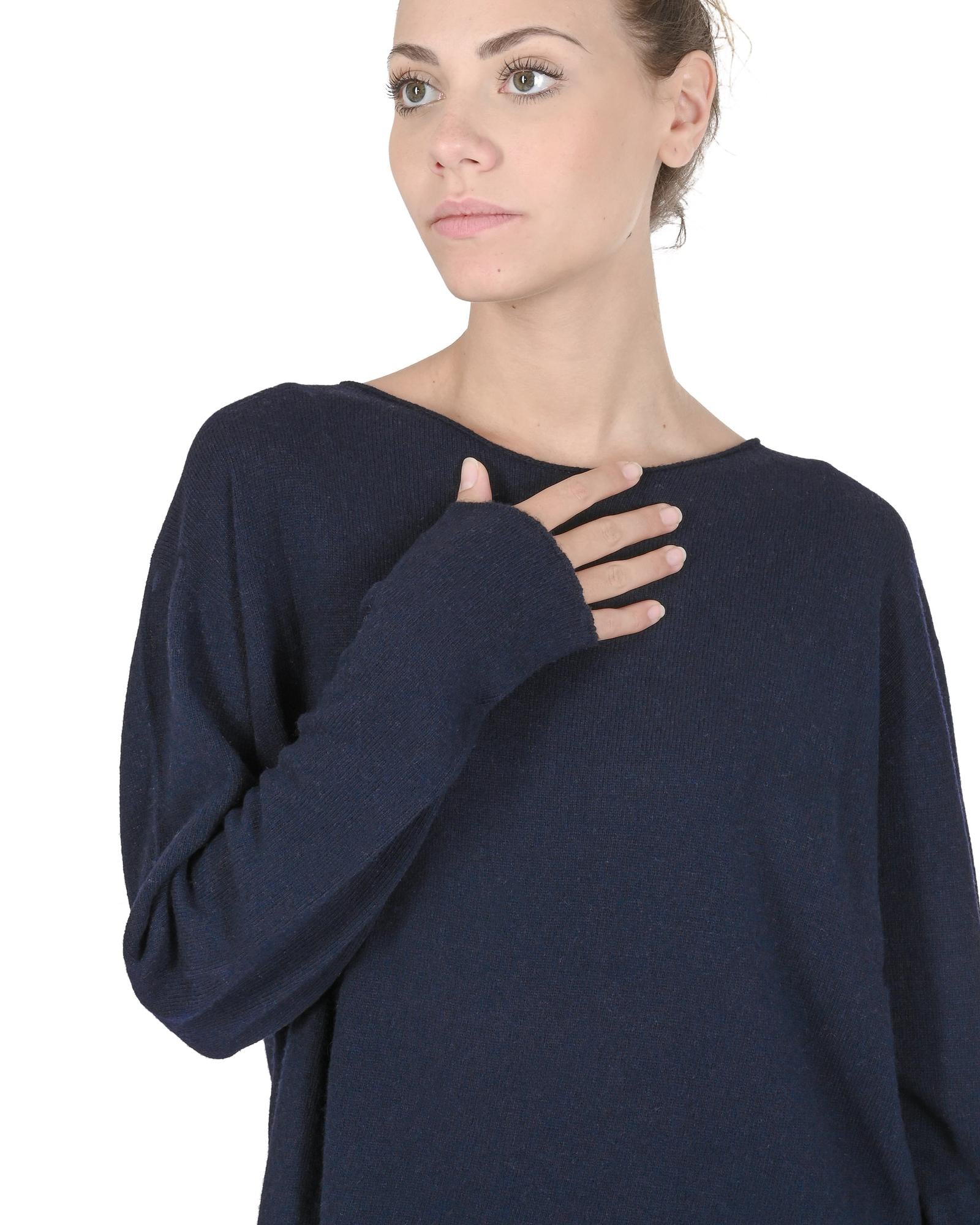 Crown of Edinburgh Cashmere Women's Premium Cashmere Oversize Boatneck Sweater in Navy blue - S