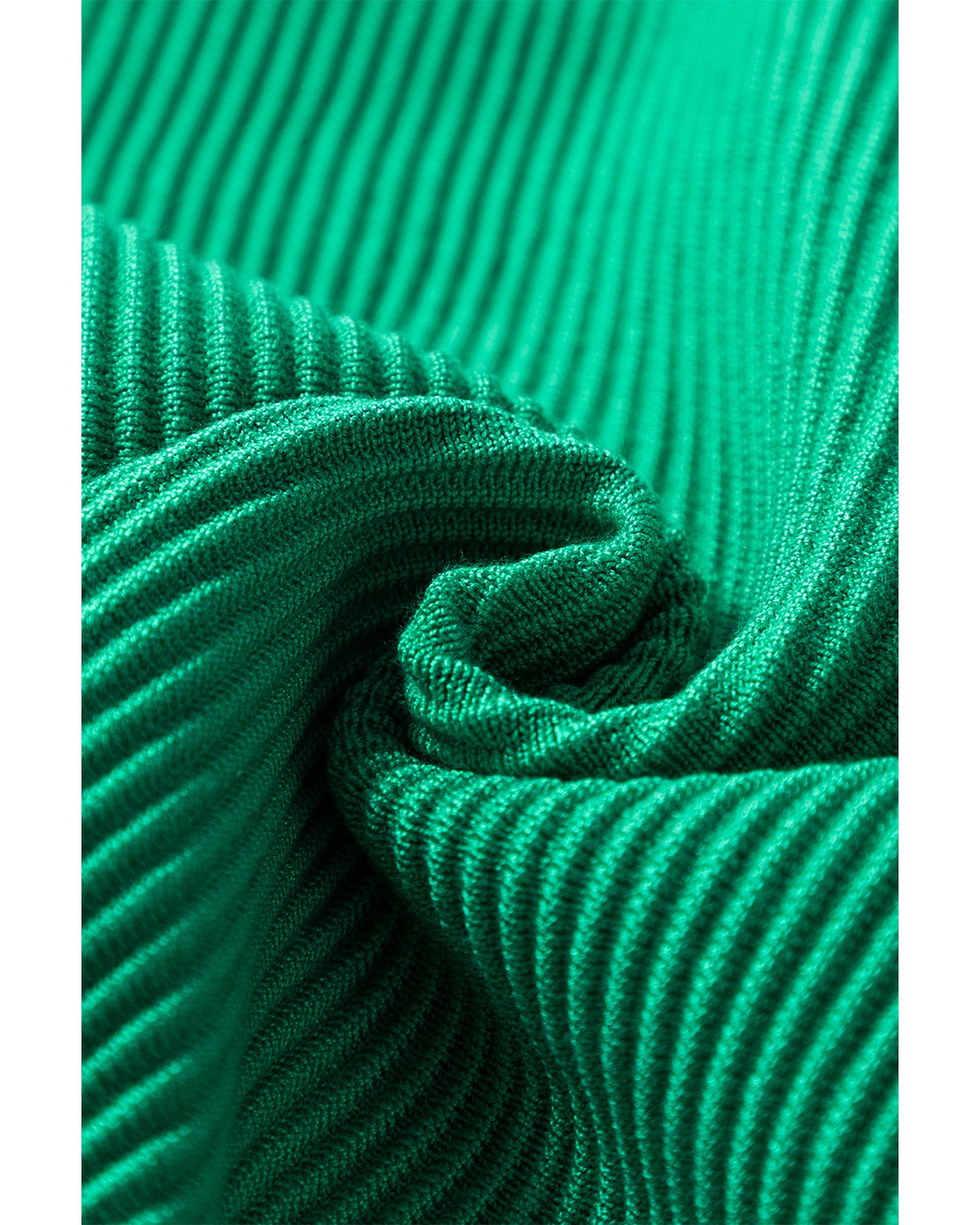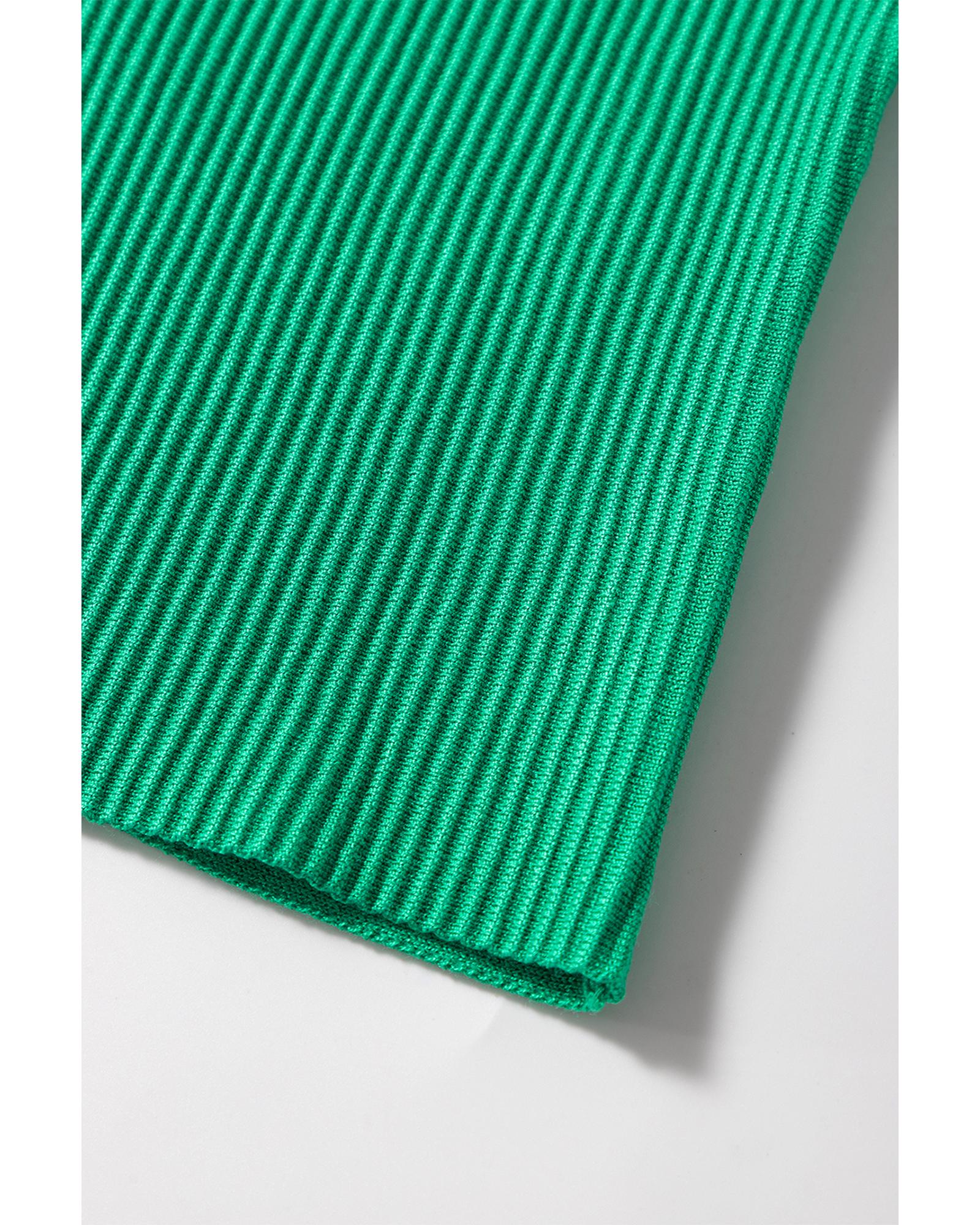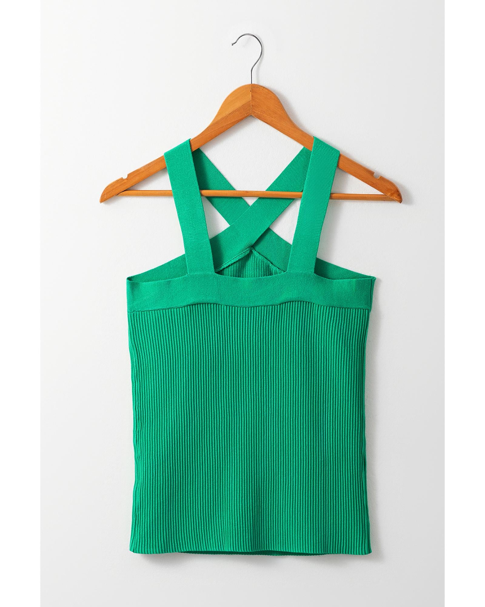 Dark Green Ribbed Criss Cross Halter Neck Sheath Sweater Tank Top - S