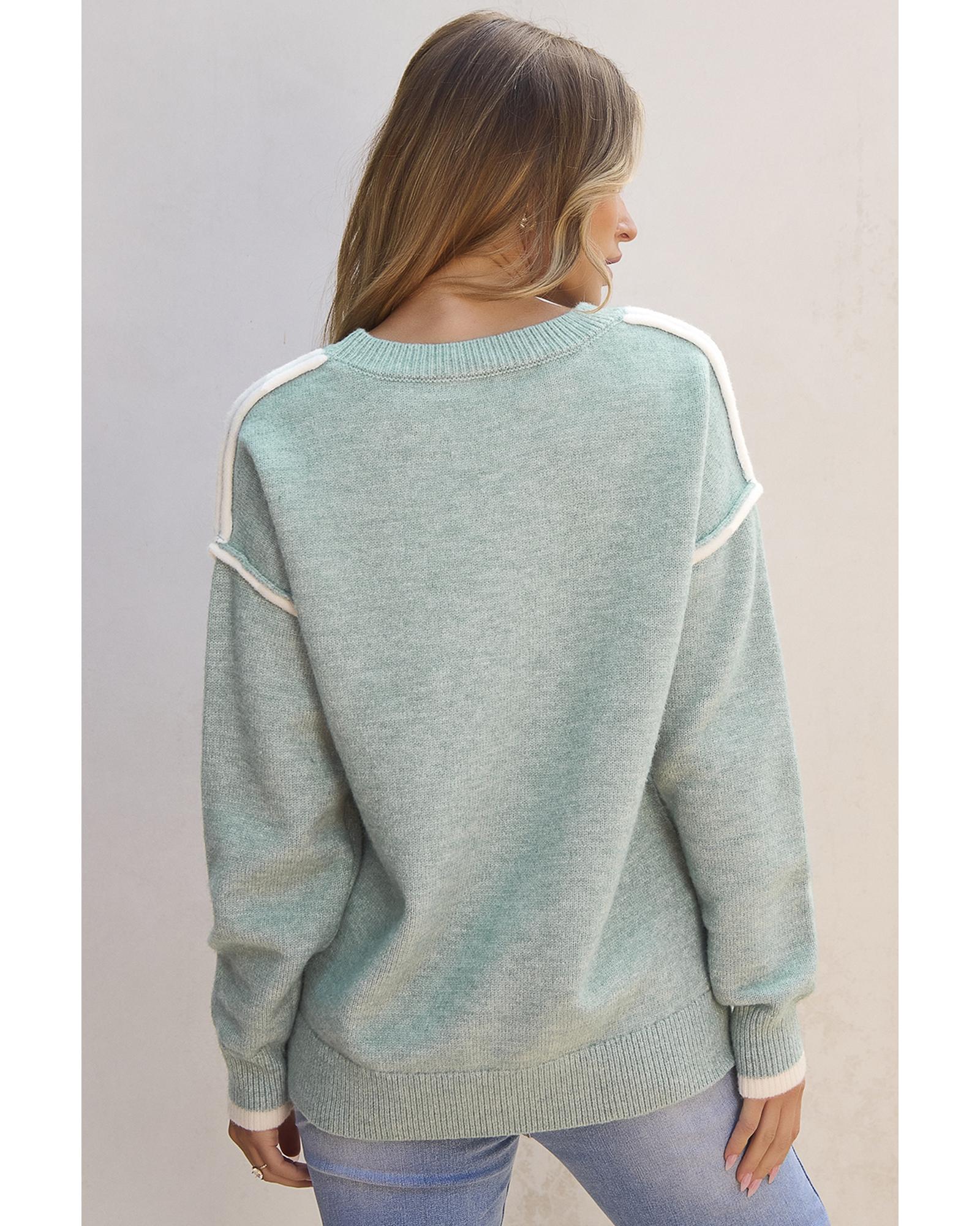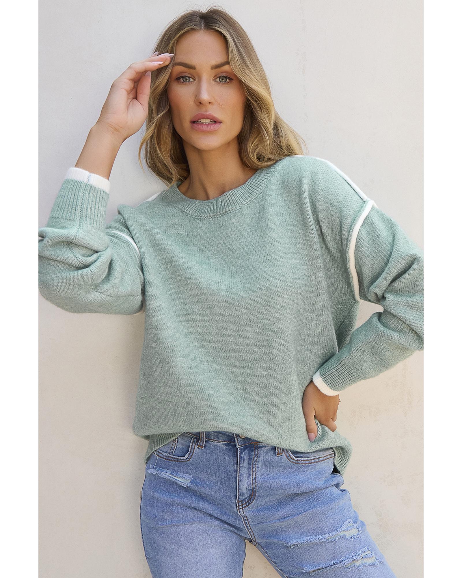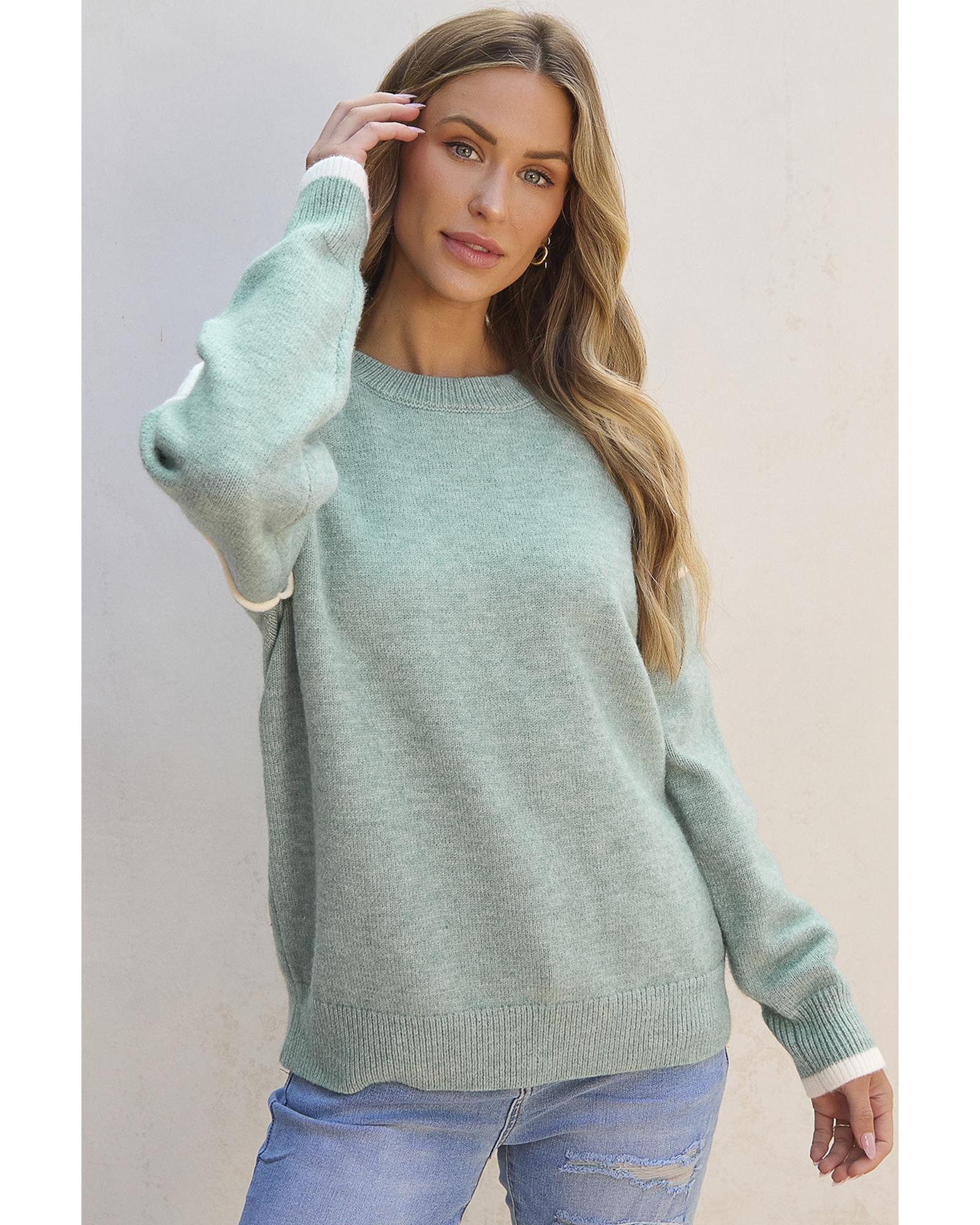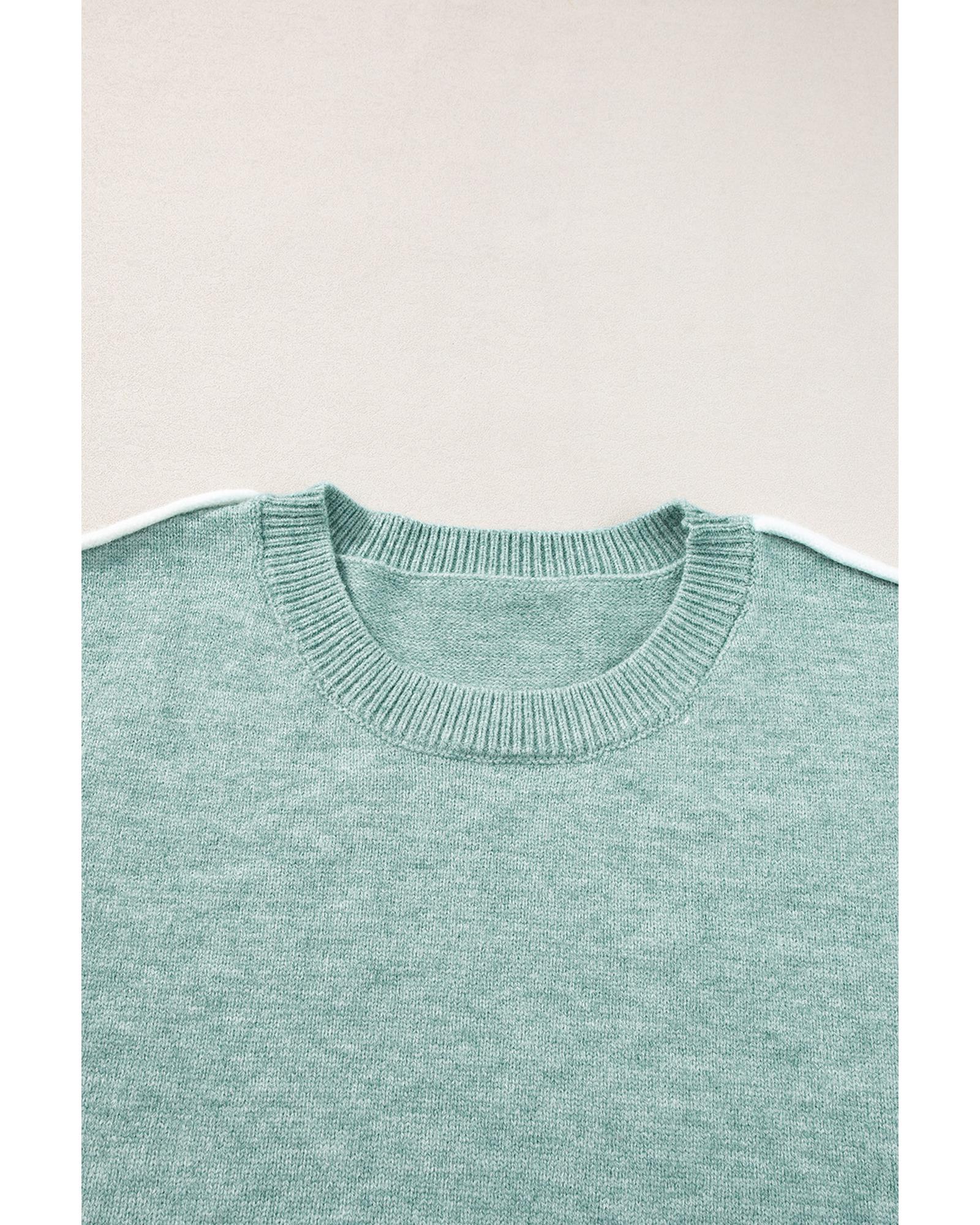 Moonlight Jade Colorblock Contrasting Edge Crewneck Sweater - XL