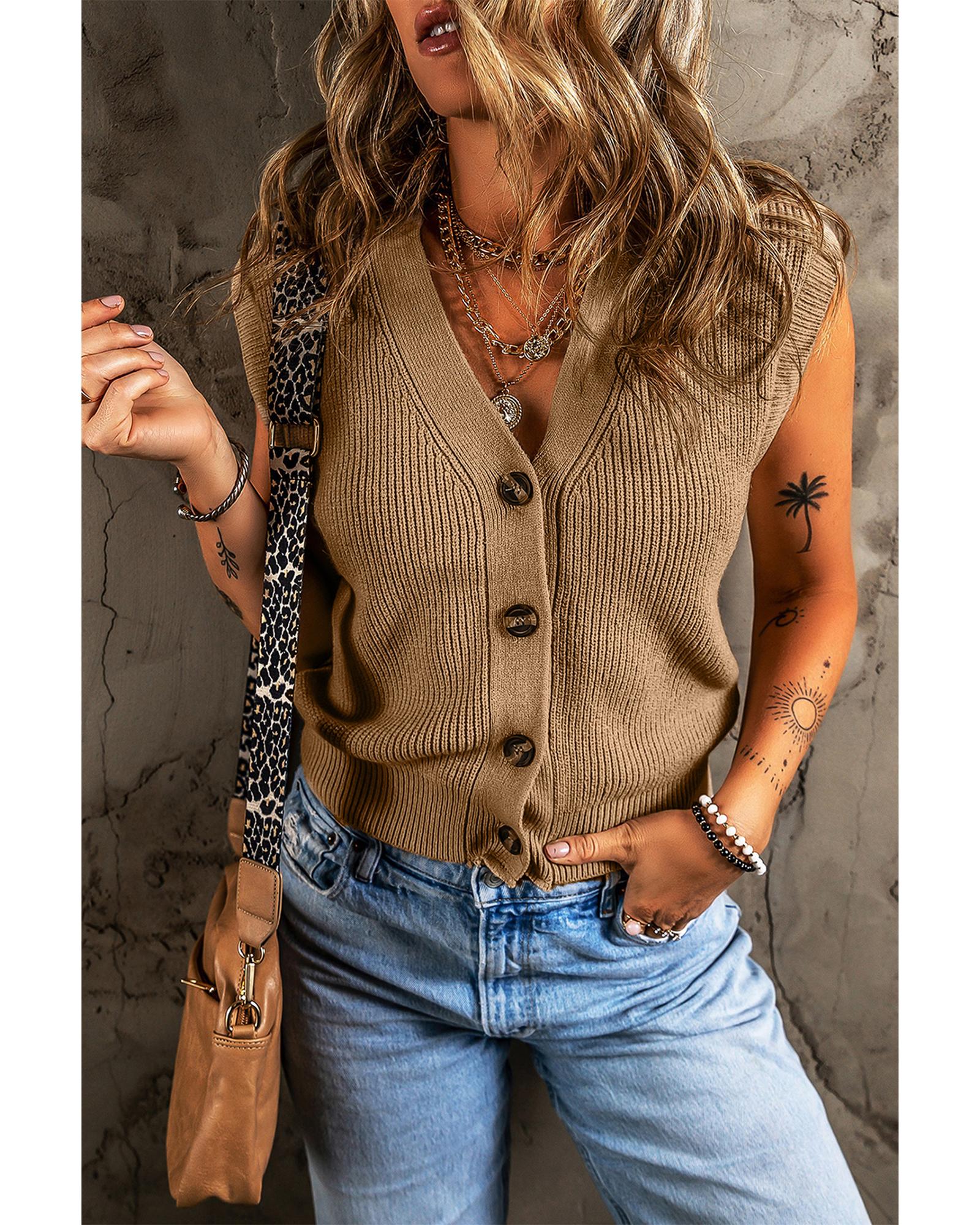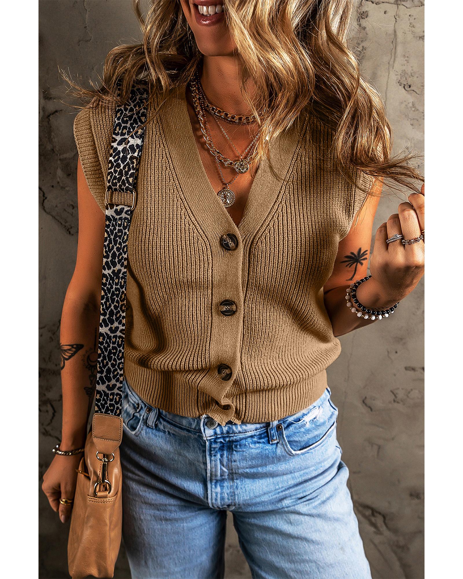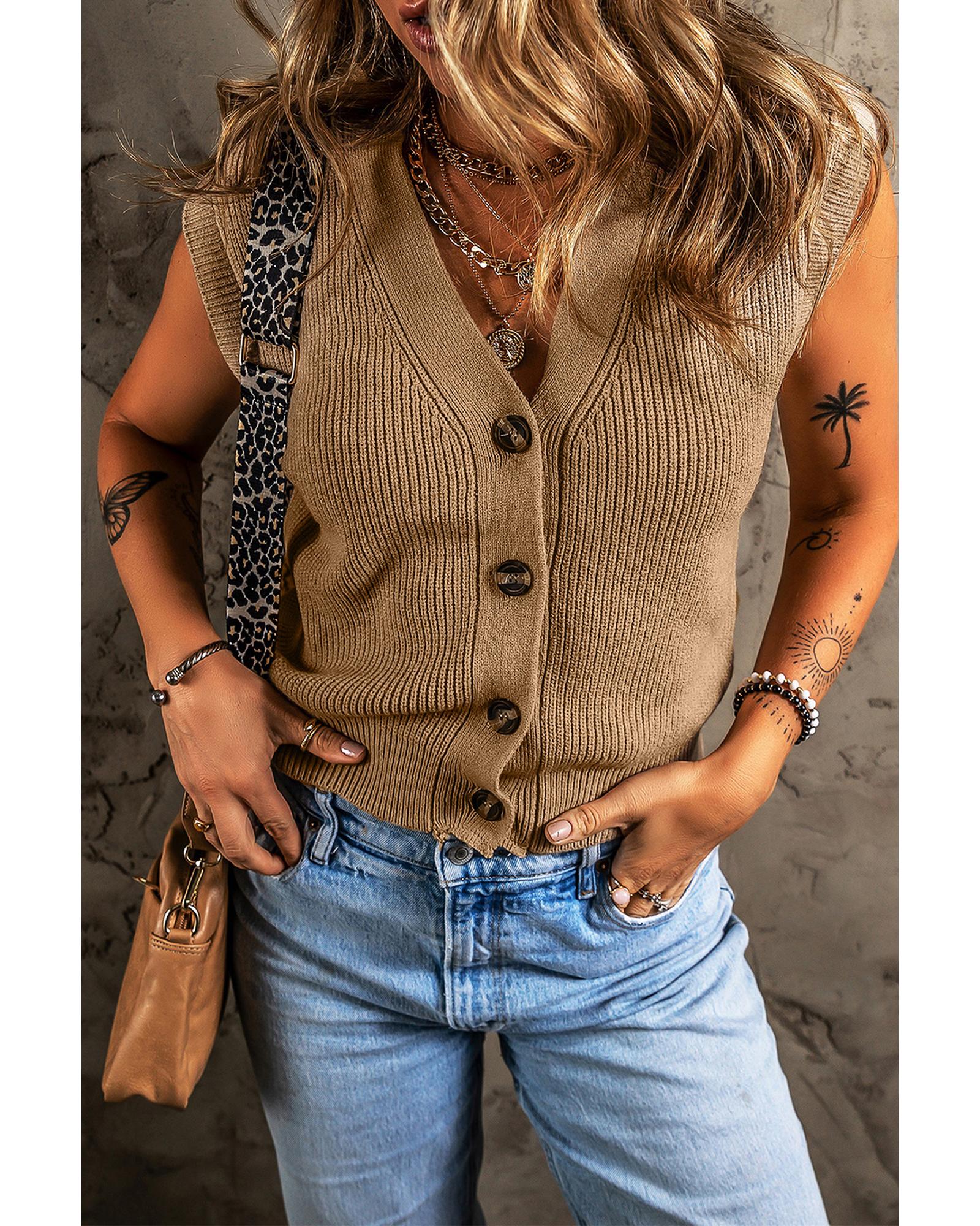 Parchment V Neck Buttoned Front Sweater Vest - M
