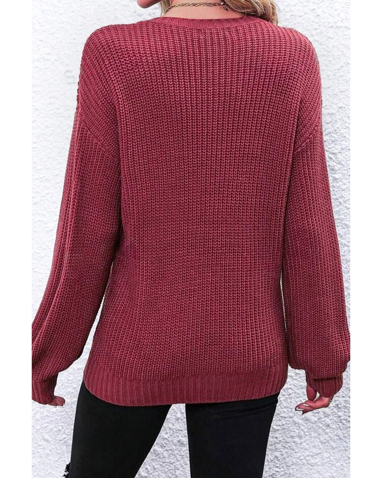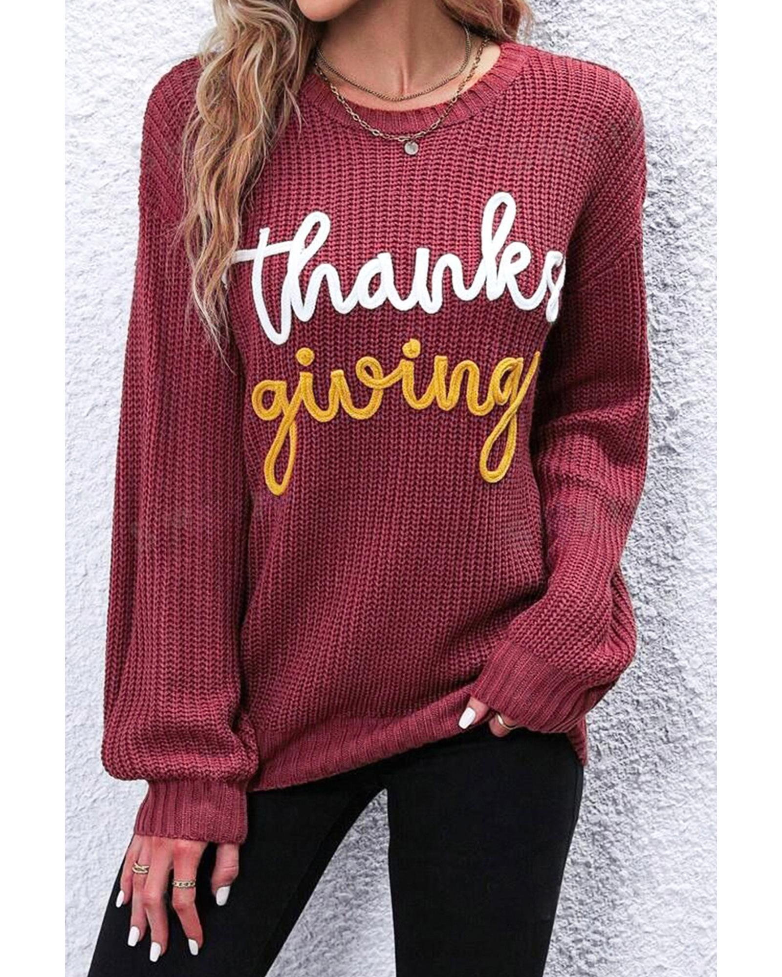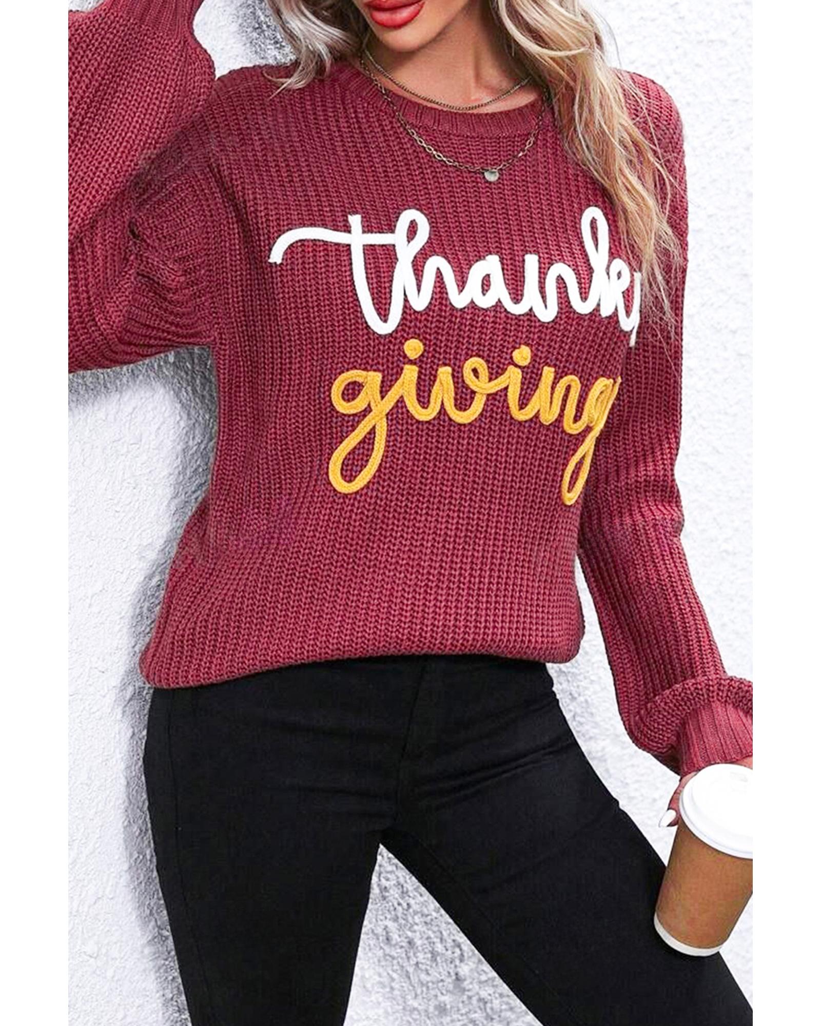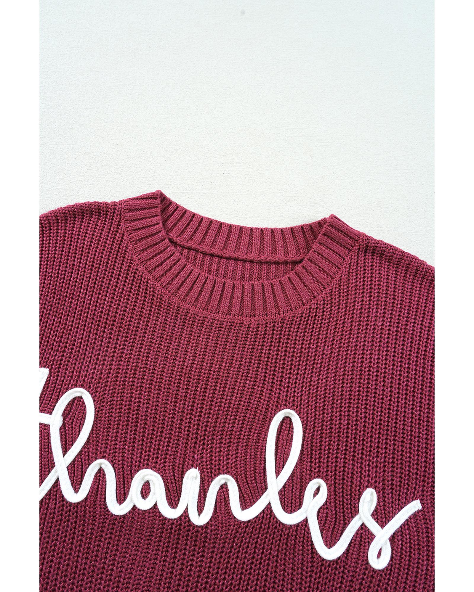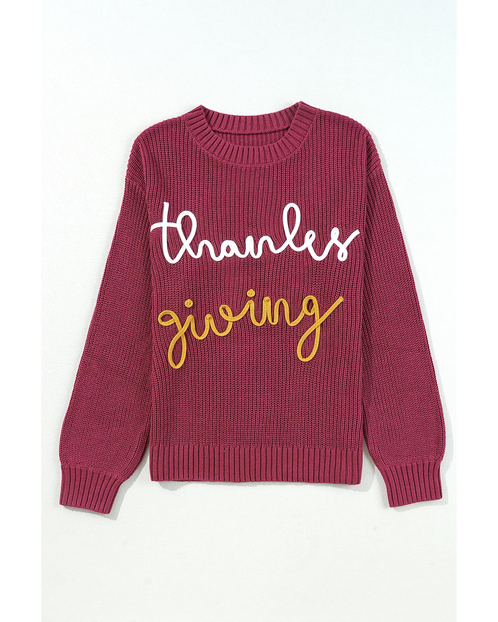 Red Sandalwood Thanks Giving Letter Graphic Crew Neck Sweater - XL