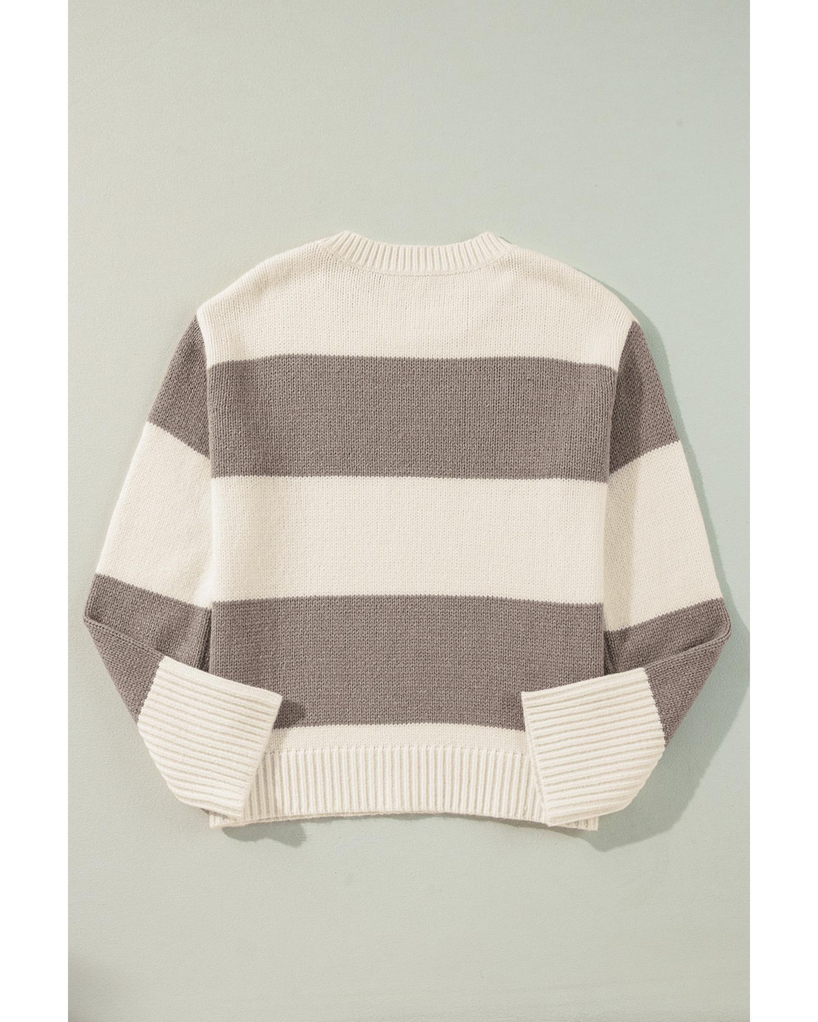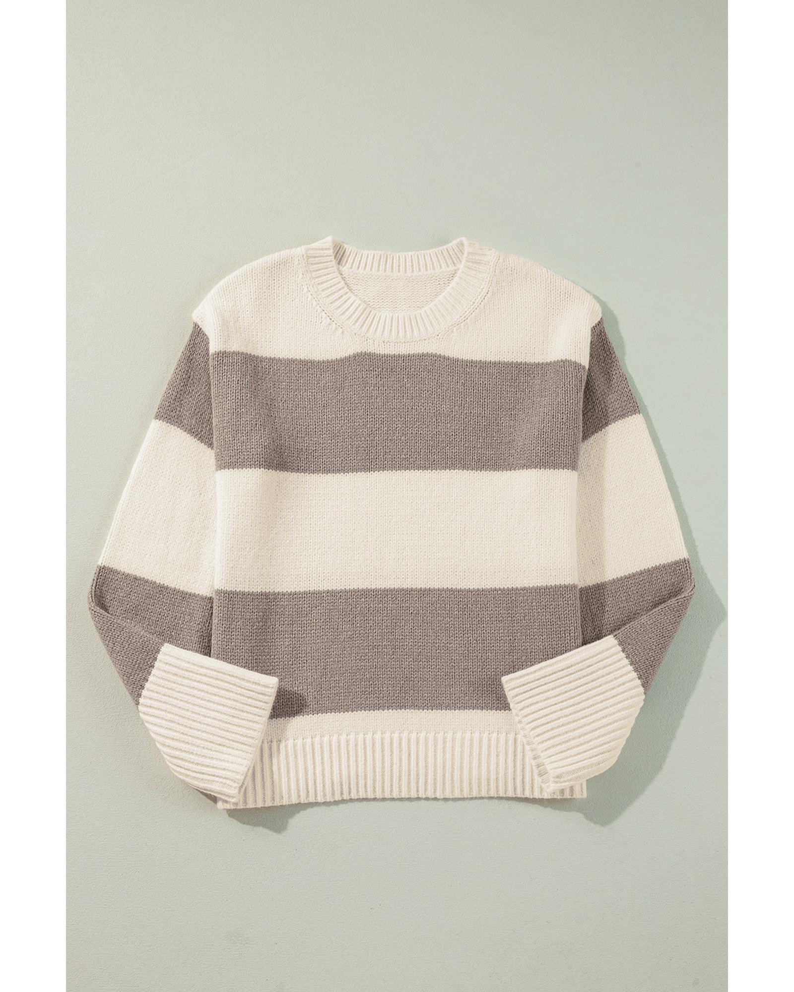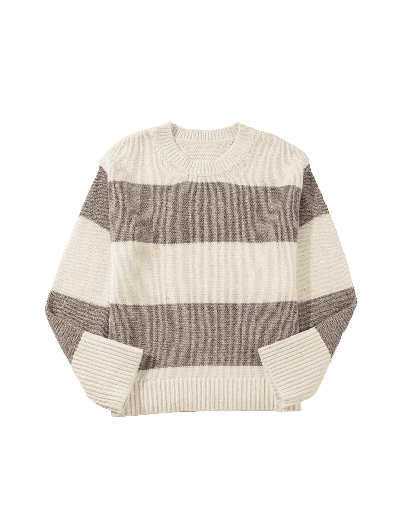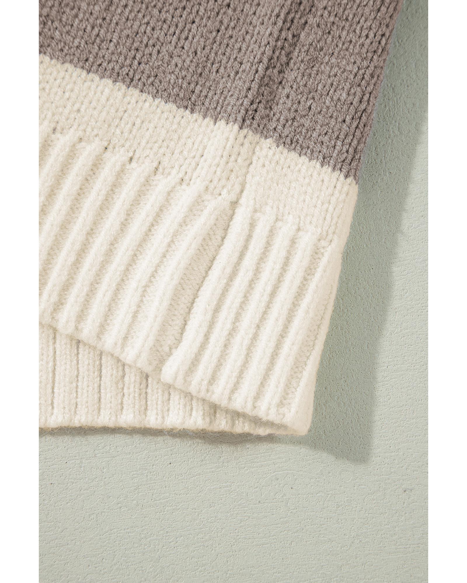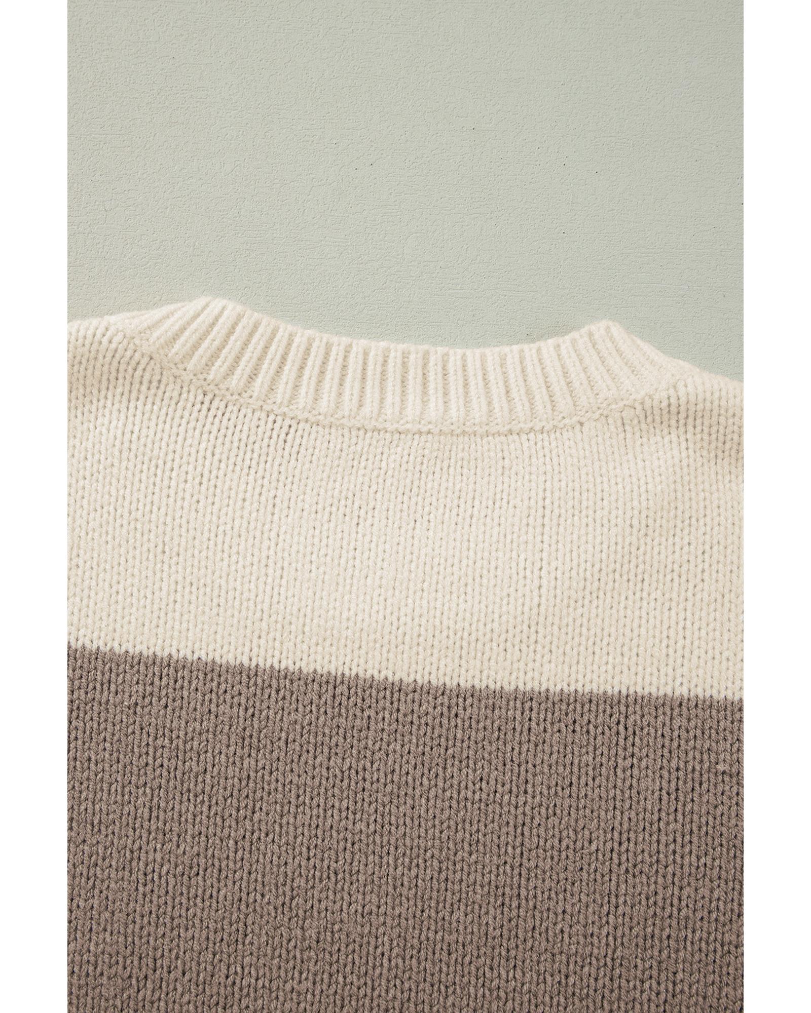 Simply Taupe Colorblock Loose Pullover Sweater - M