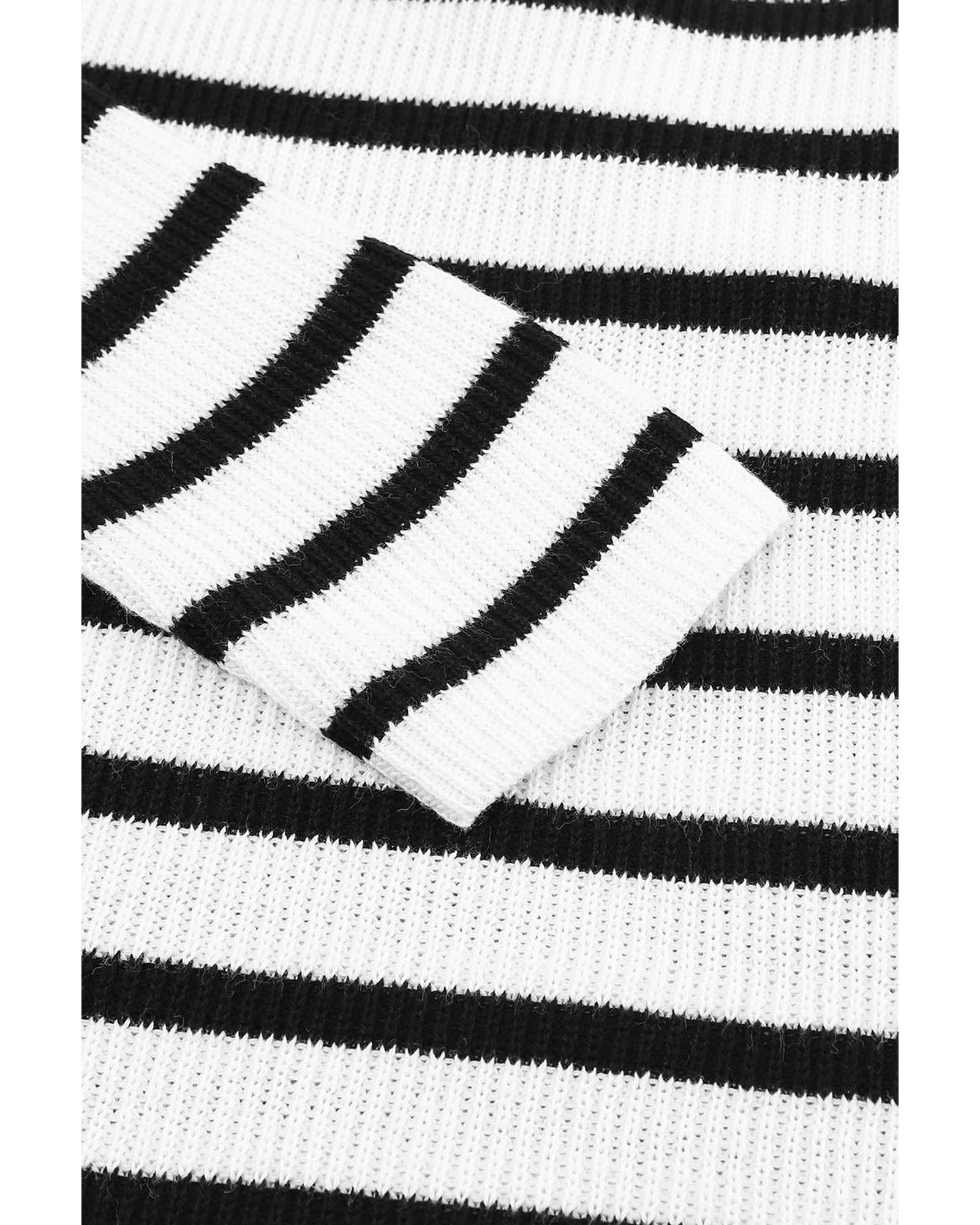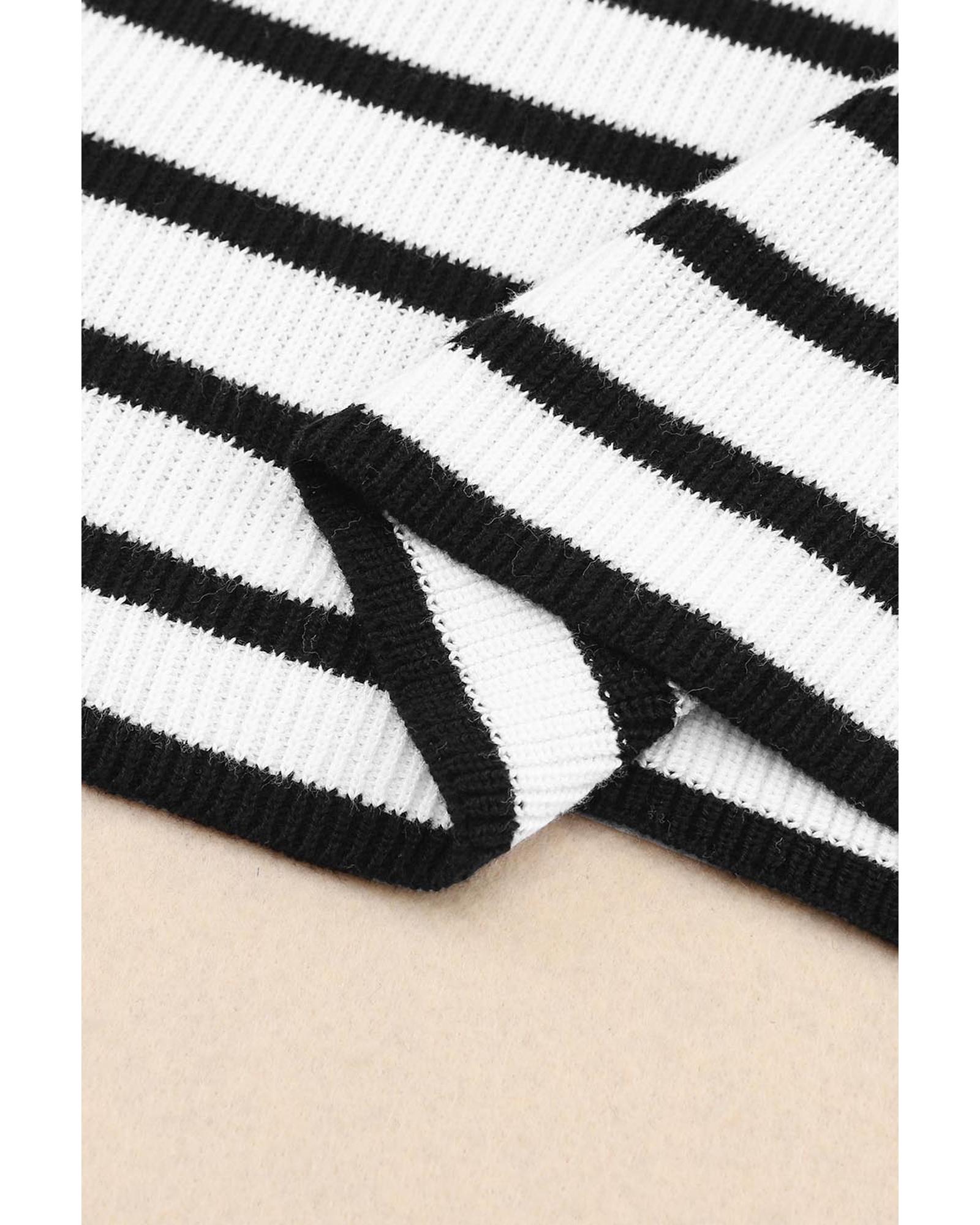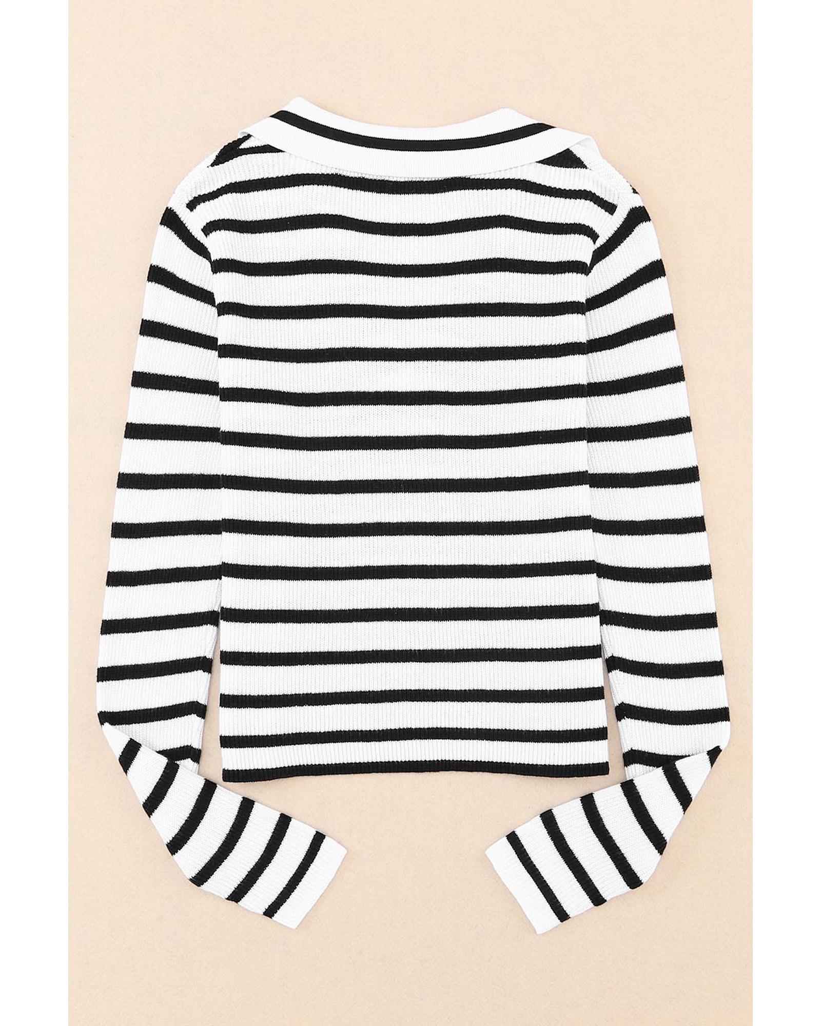 Stripe Collared V Neck Lightweight Knit Casual Sweater - L