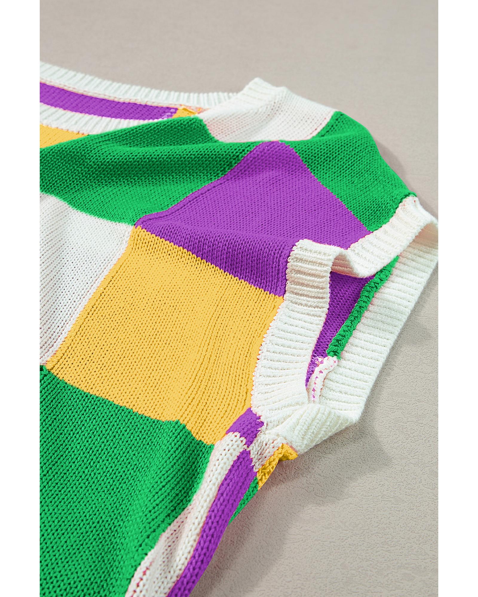 Tillandsia Purple Color Block Cap Sleeve Sweater - M