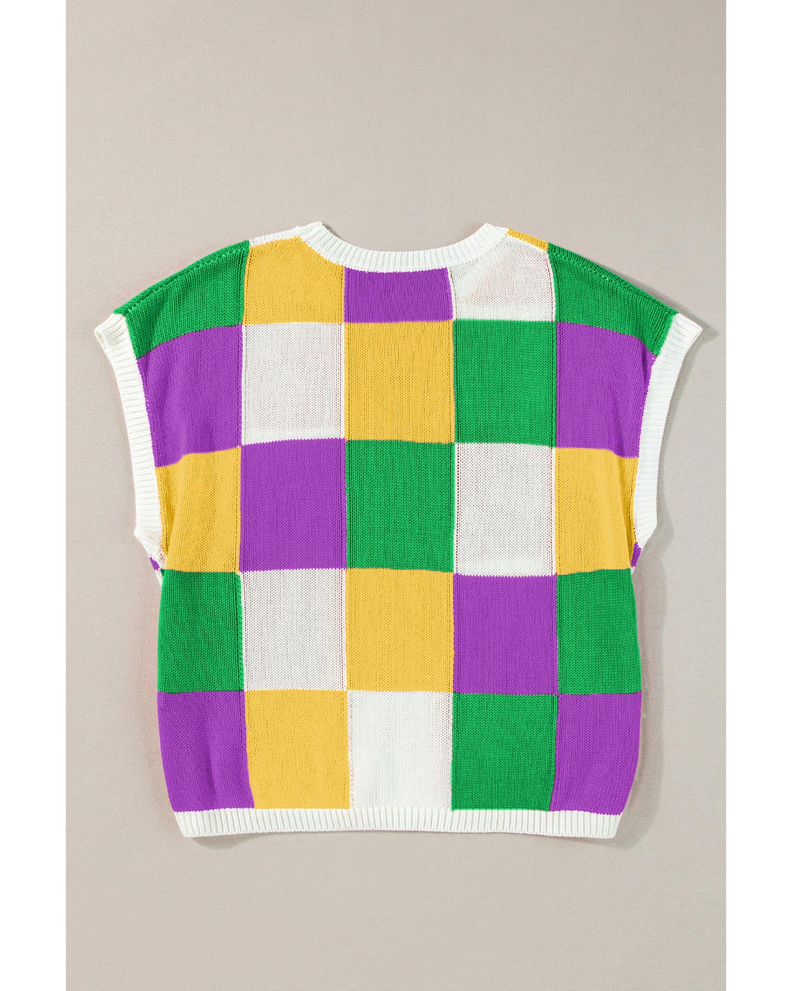 Tillandsia Purple Color Block Cap Sleeve Sweater - S