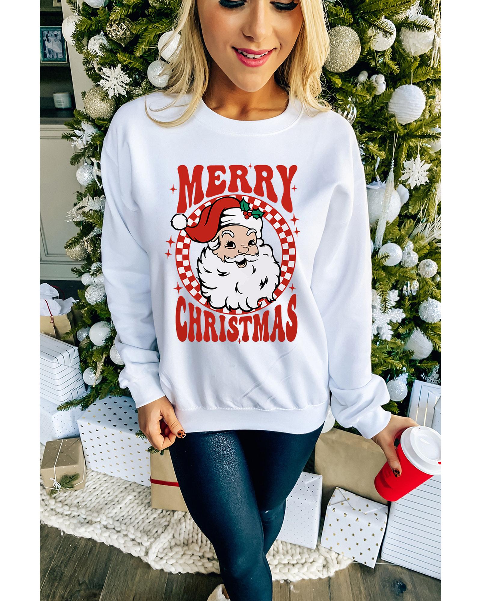 Beige MERRY CHRISTMAS Christmas Claus Graphic Drop Shoulder Sweatshirt - XL