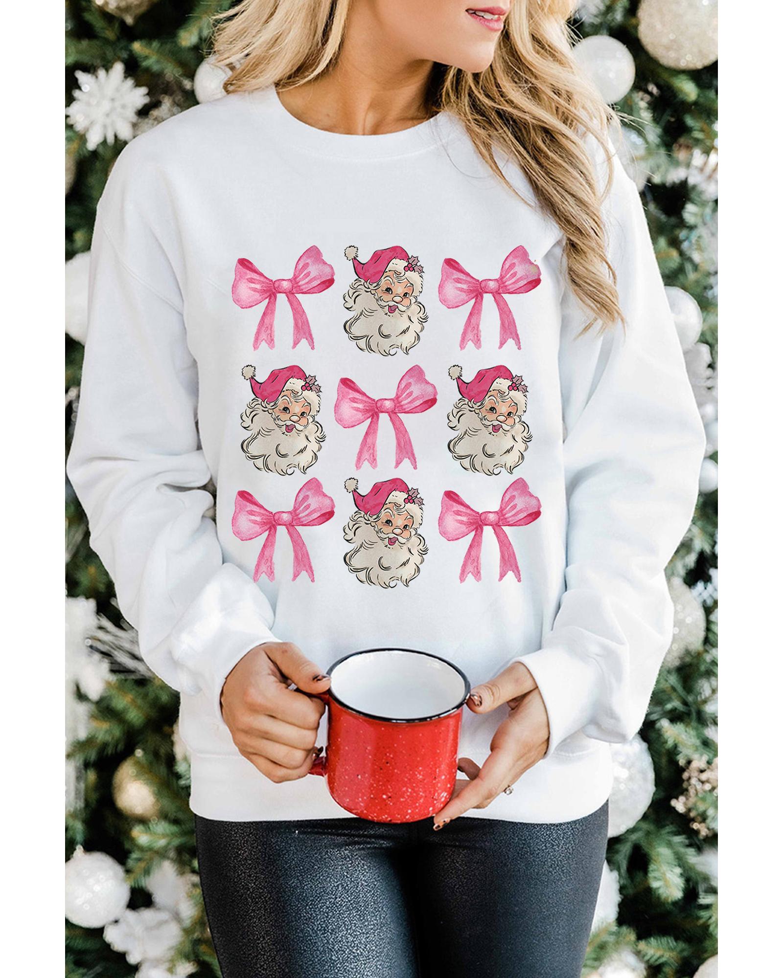Beige Santa Claus Bowknot Pattern Christmas Sweatshirt - M