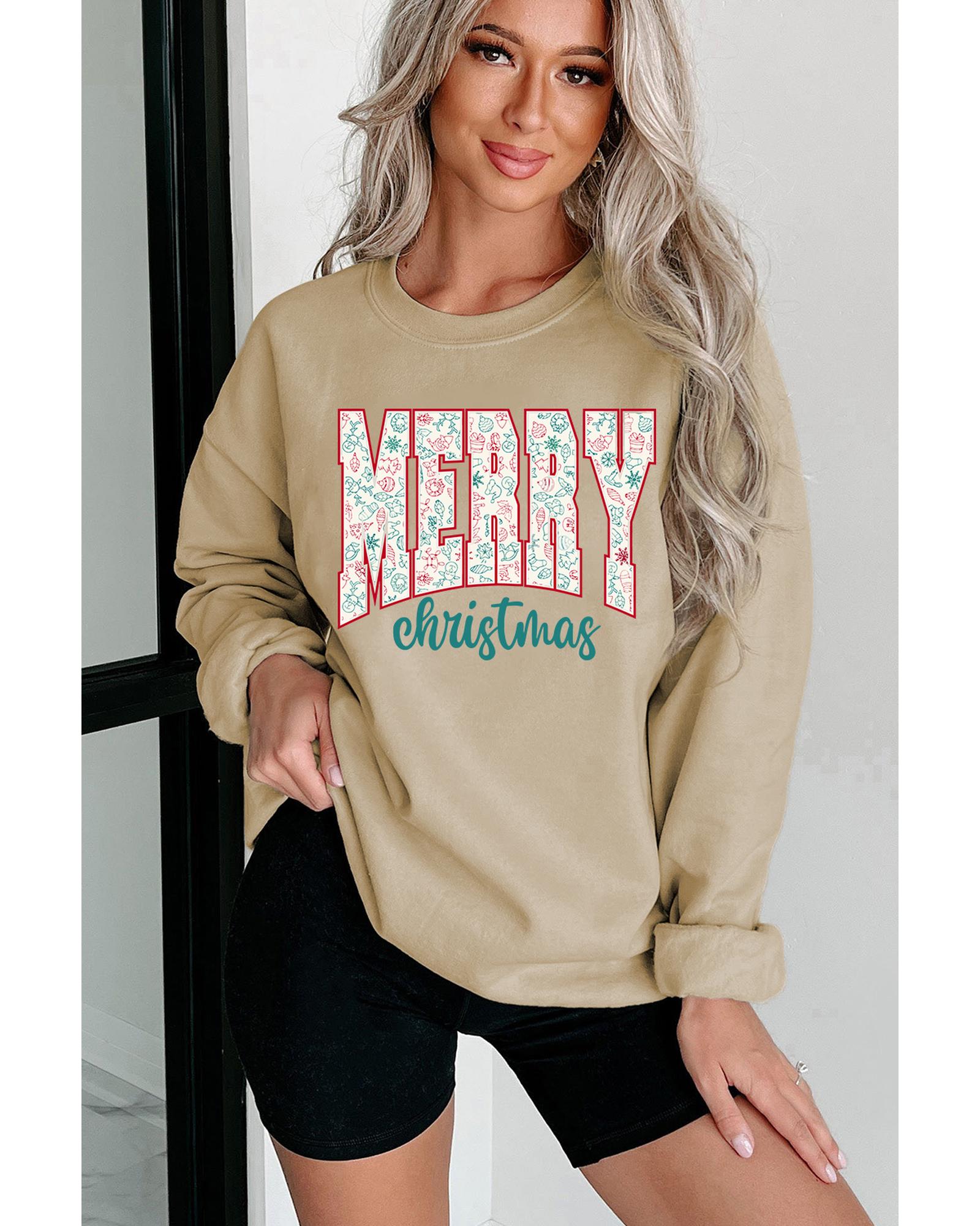Parchment Festive Element Printed MERRY Christmas Graphic Sweatshirt - M