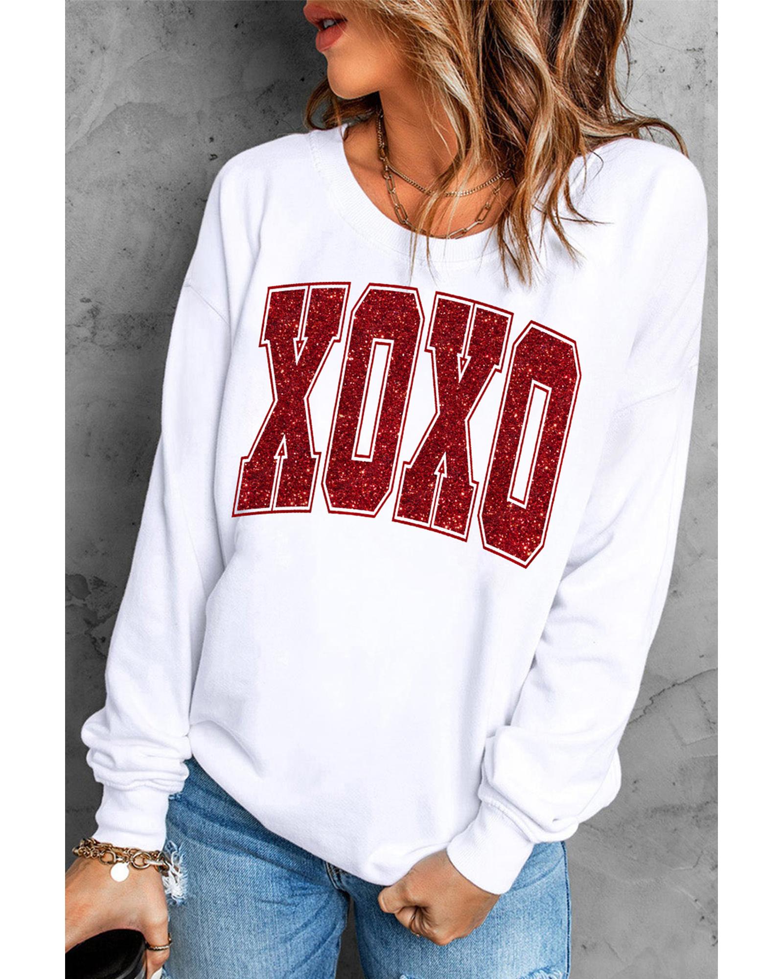 White Glitter XOXO Graphic Crewneck Valentines Pullover Sweatshirt - S