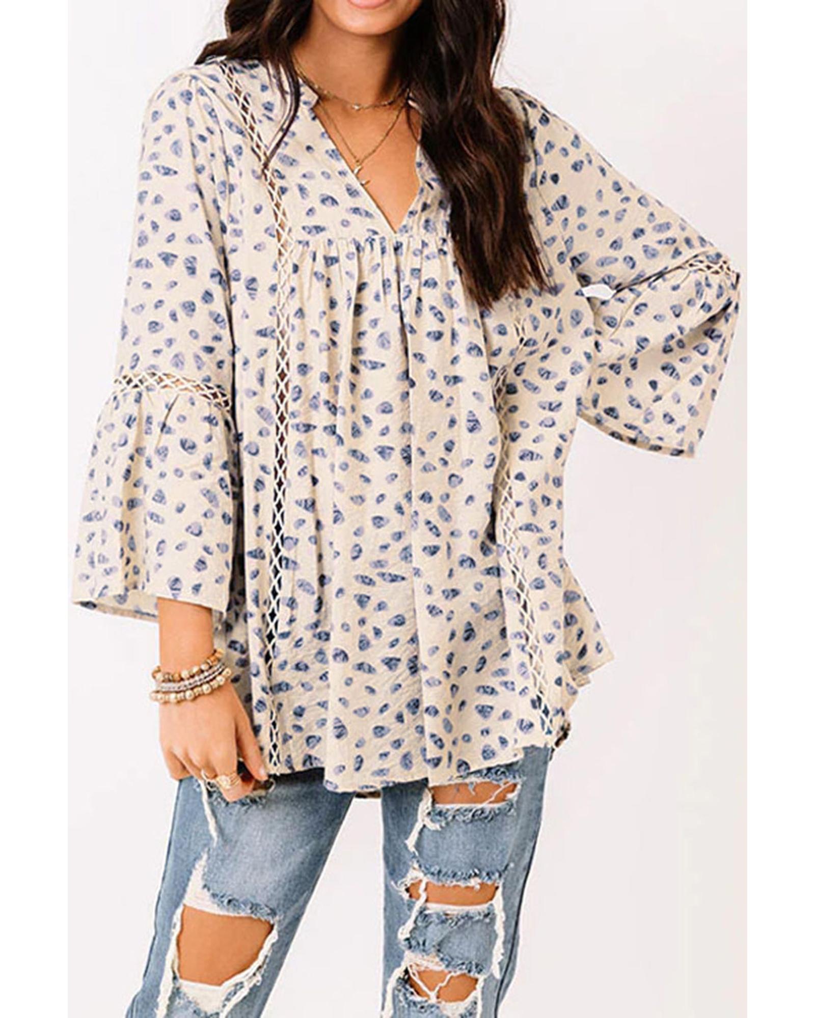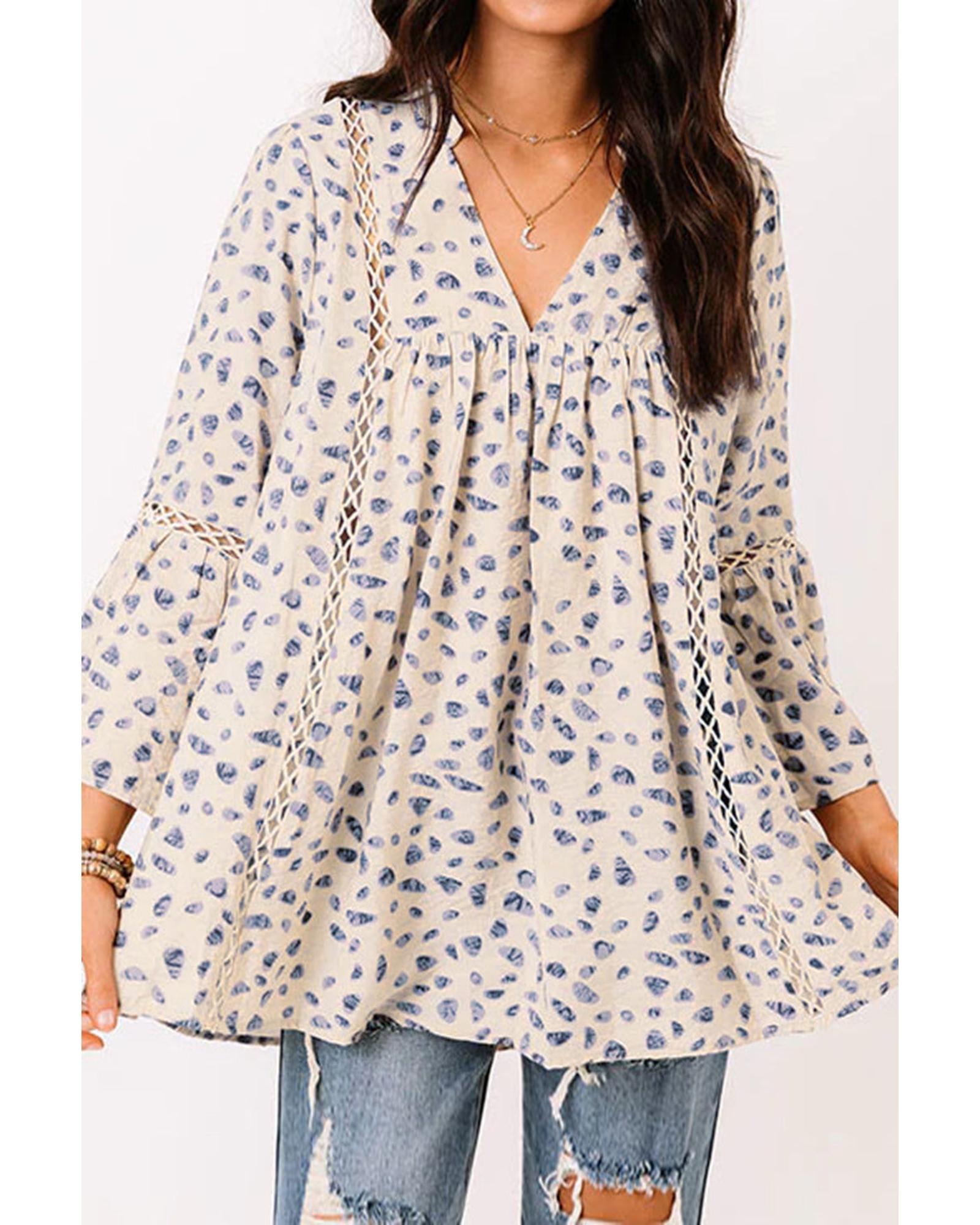 Azura Exchange Leopard Lace Trim Babydoll Blouse - XL