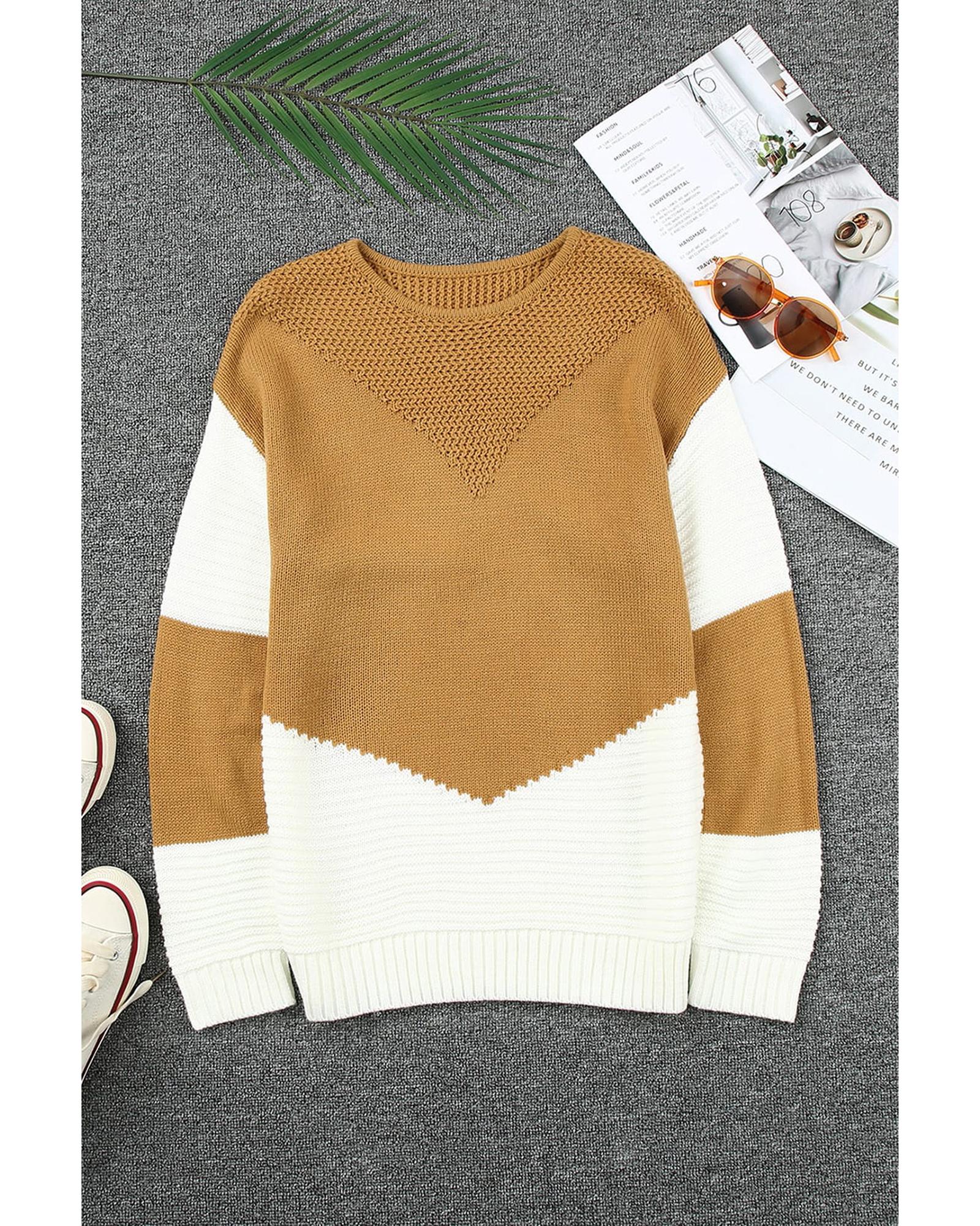Two-Tone Chevron Pullover Sweater - XL