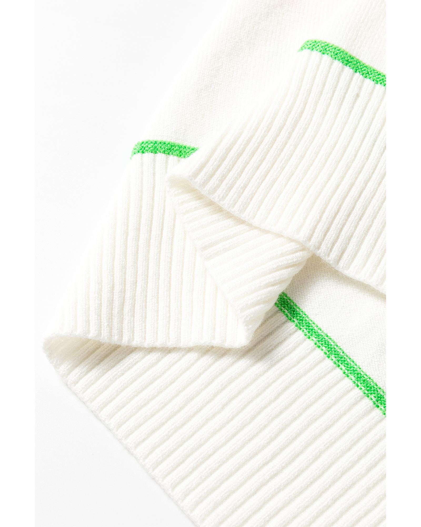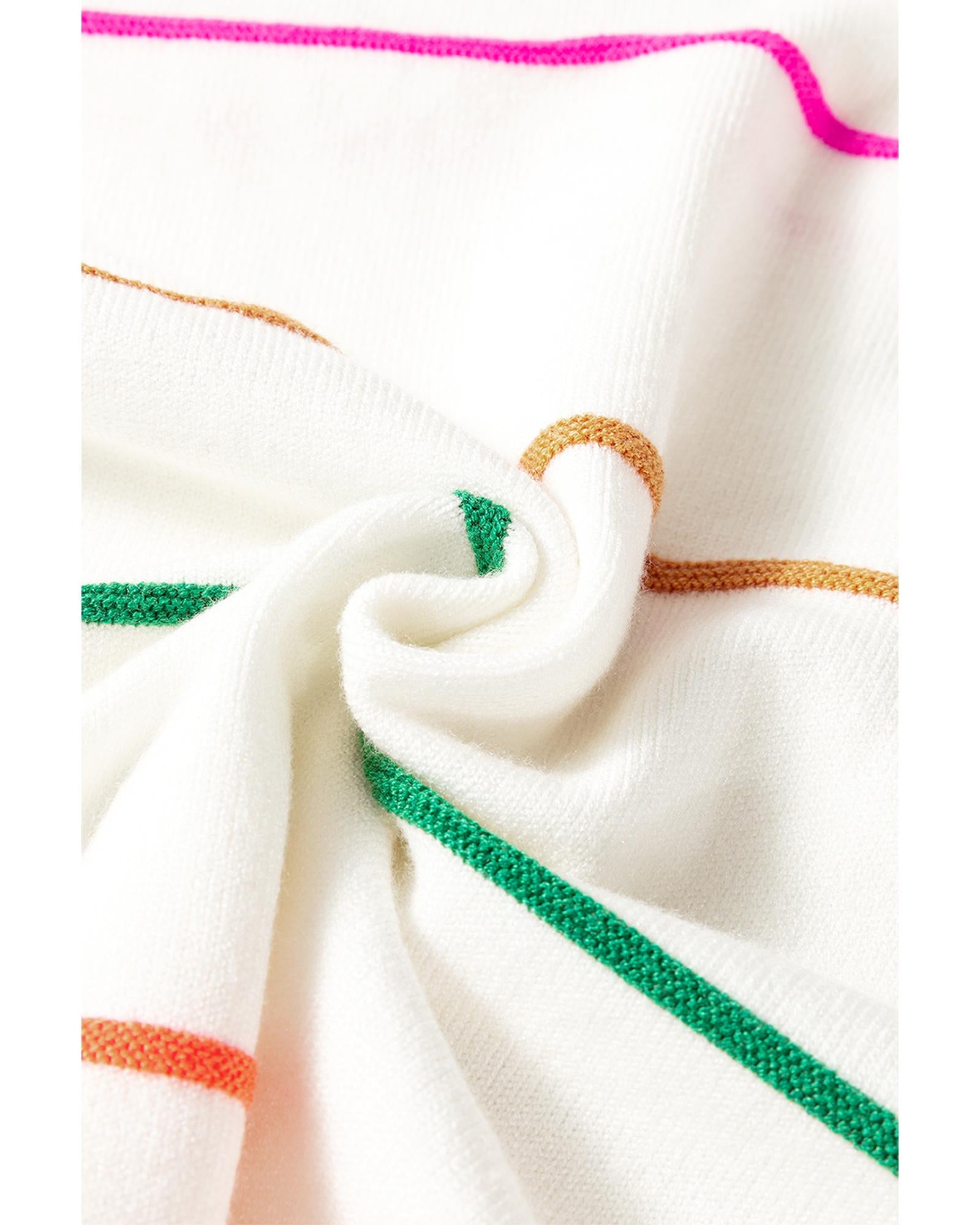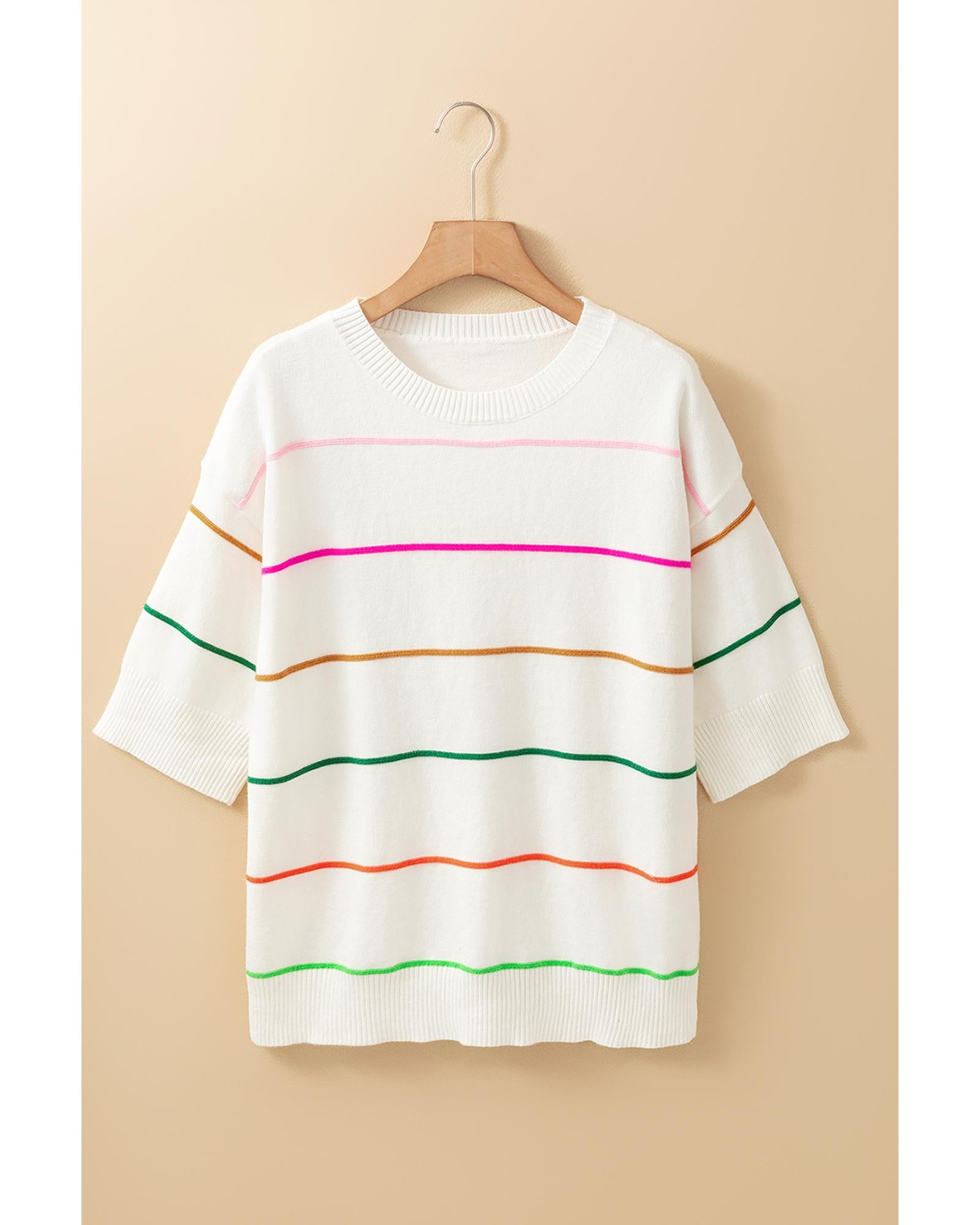 White Colorblock Striped Half Sleeve Drop Shoulder Sweater - M