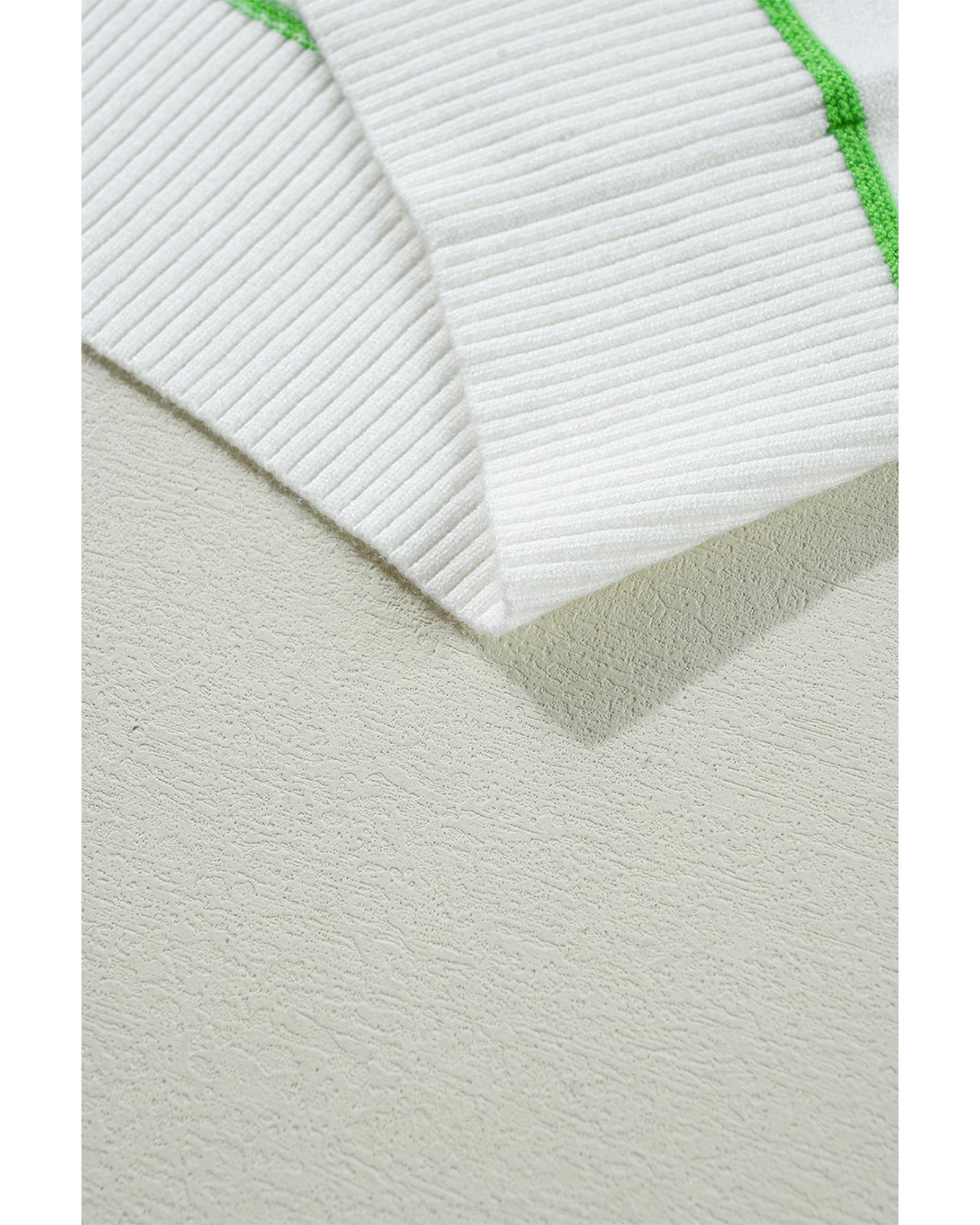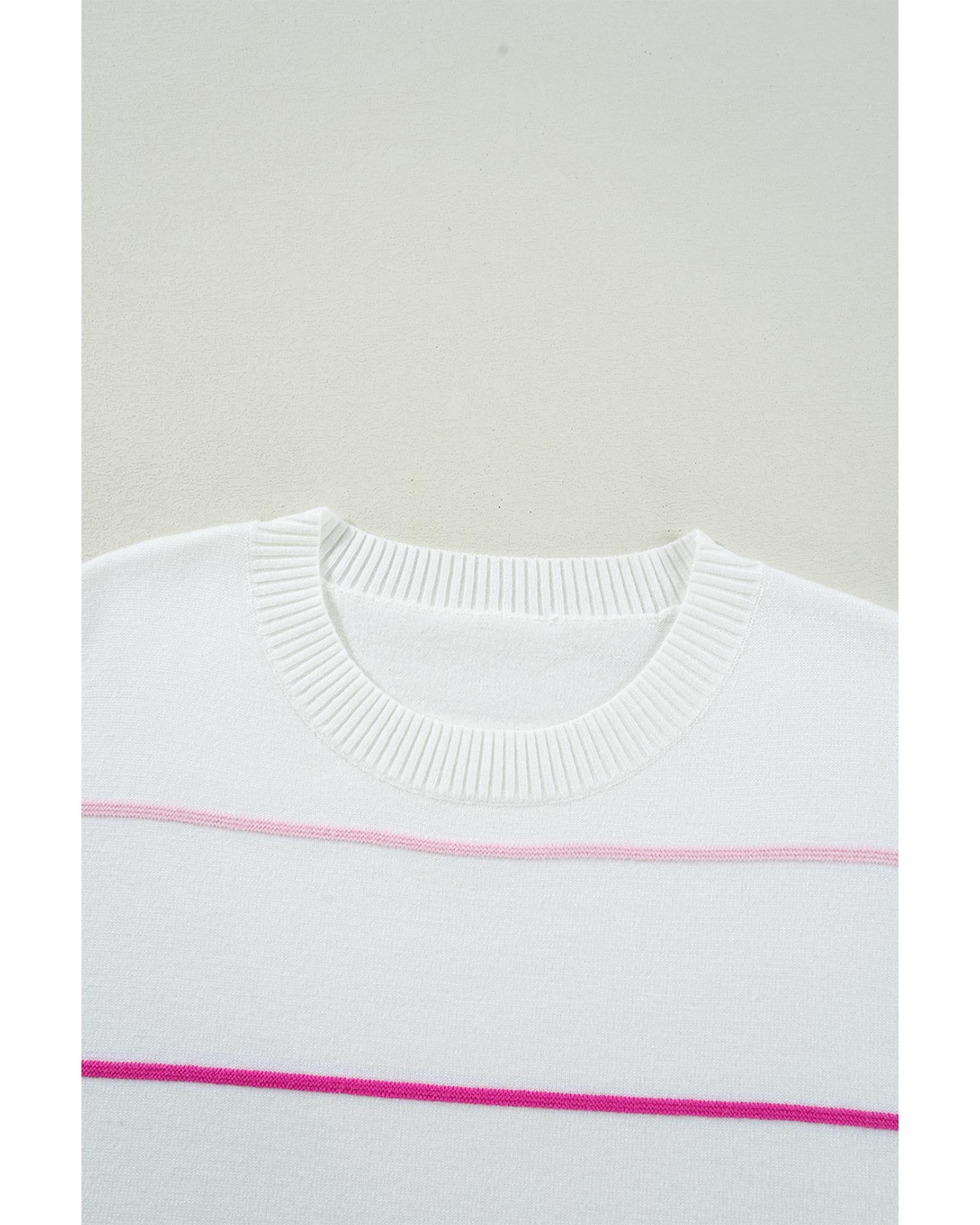 White Colorblock Striped Half Sleeve Drop Shoulder Sweater - XL