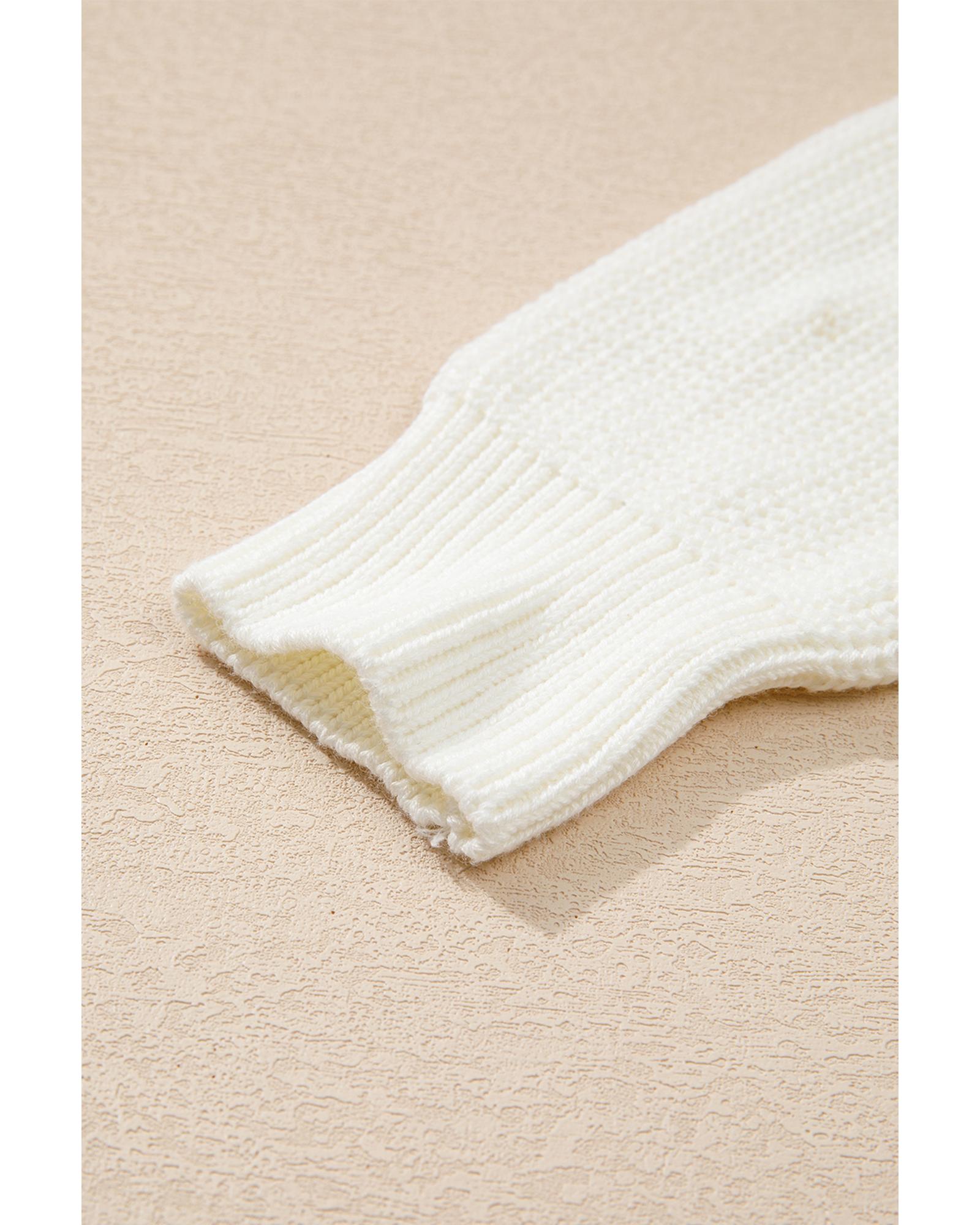 White XOXO Glitter Print Round Neck Casual Sweater - M