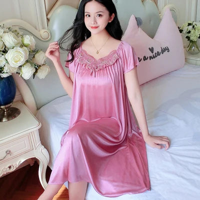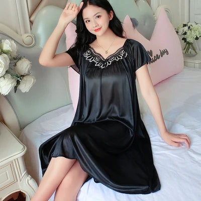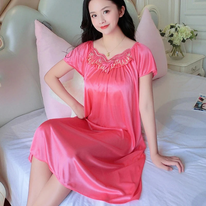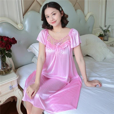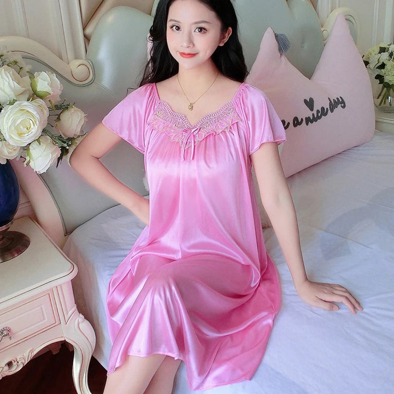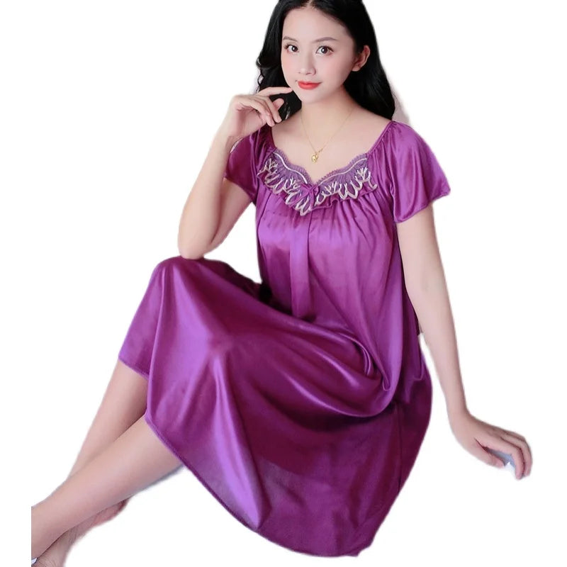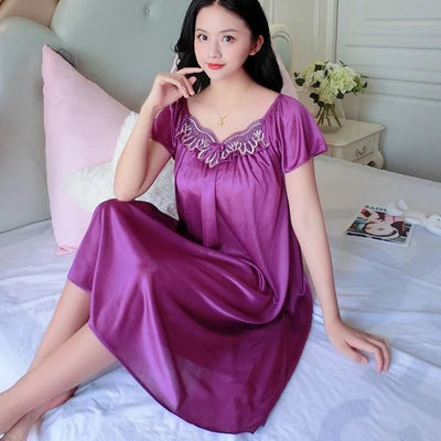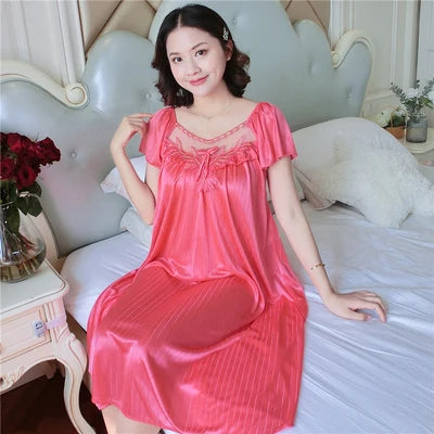 XXXXL Ladies Women Satin Sexy Lingerie Lace Fancy Nightshirts Elegant Chemise Sleepwear Night Baby Doll Underwear Sleepwear